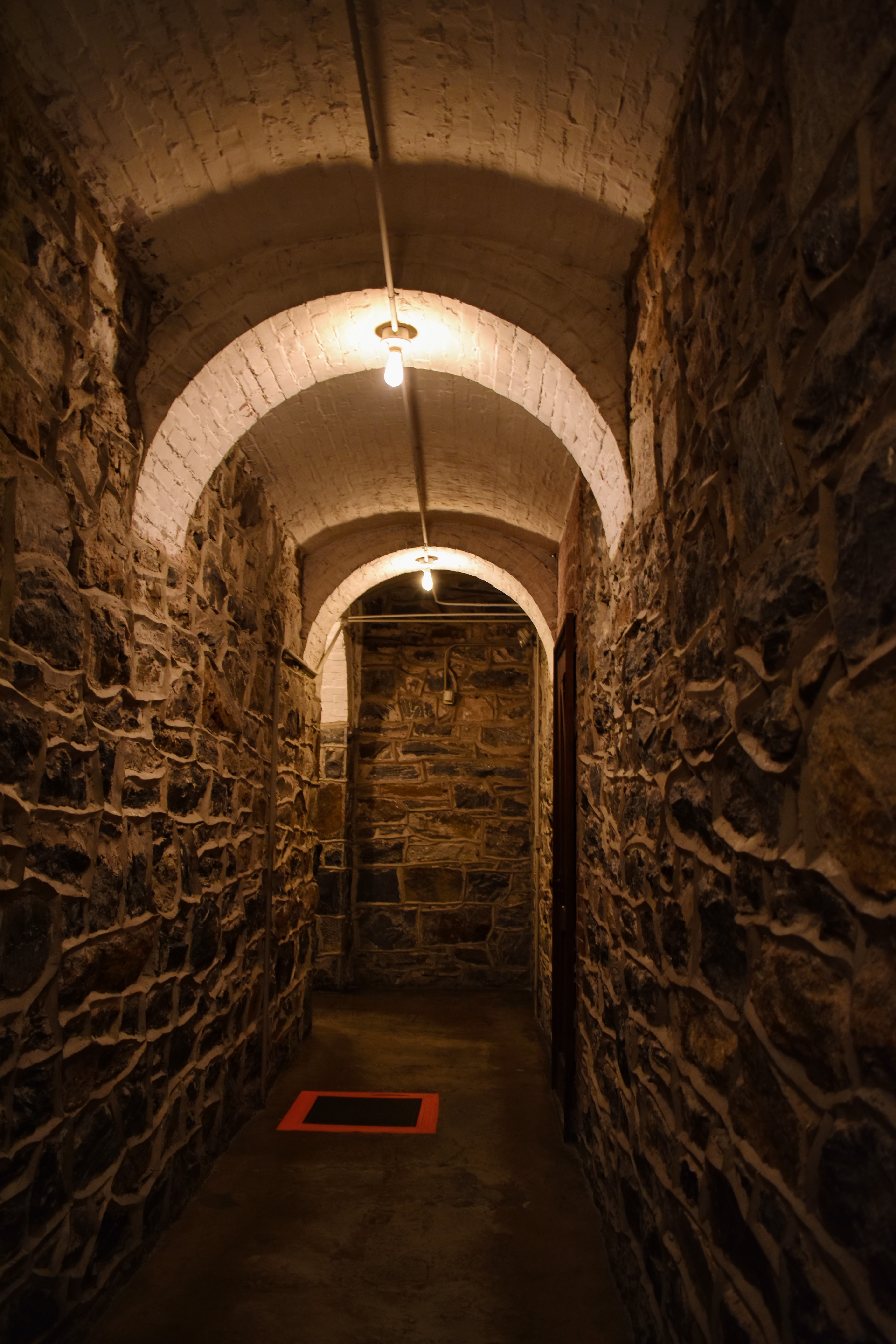 We got to Antler Hill Village with plenty of time to spare before our 6:30 wine tasting. So, we walked down to see some goats, walked through the village, and found the Winery. The Winery is located in the old dairy barn (more like dairy complex), and you get there by walking through an old stone hallway. I had to stop and read all of the informational plaques along the way. We got up to the Winery and checked in for our wine tasting. We had to wait a few minutes for a wine host to be ready for us, but it was worth it!