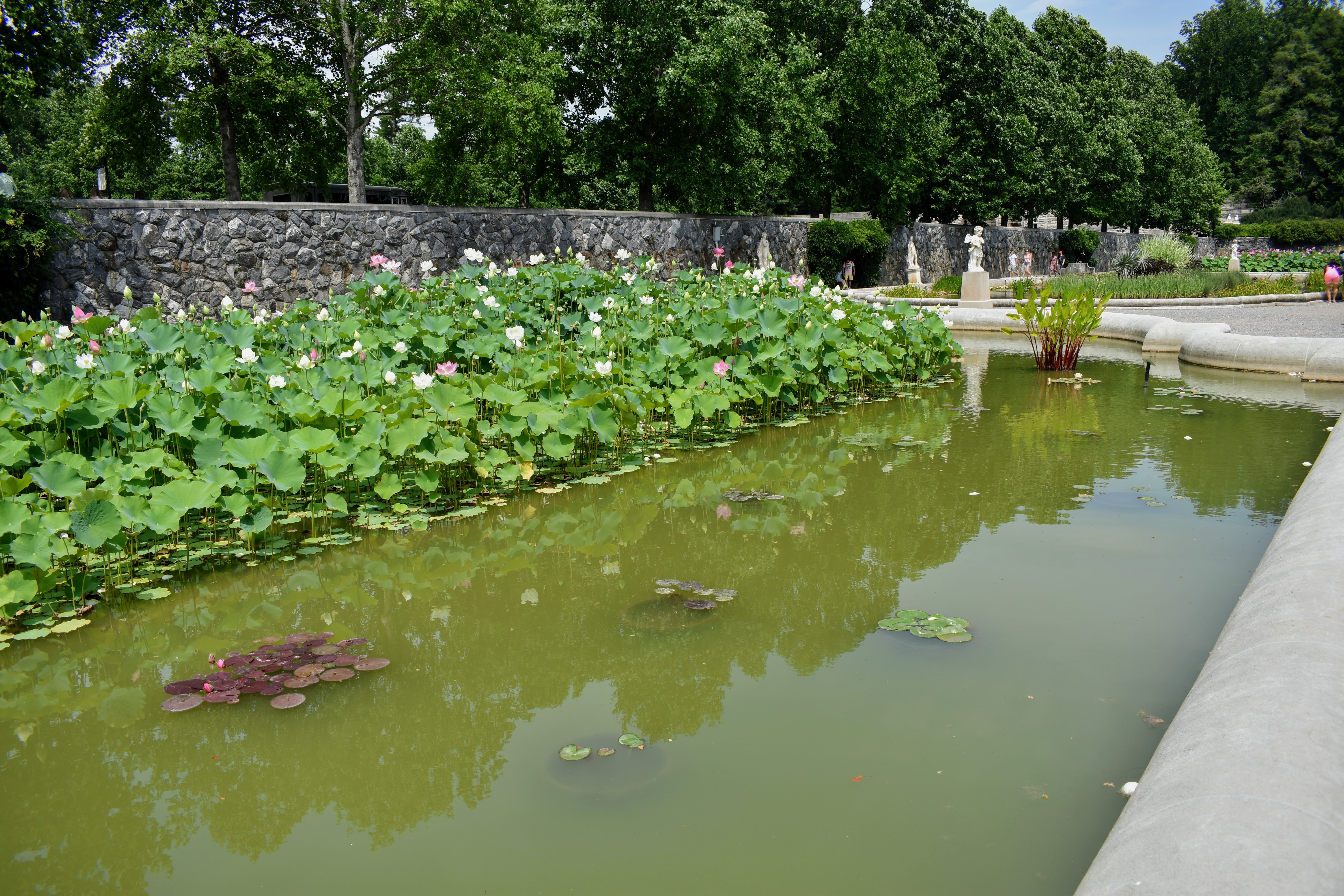 By the time I’d gotten my postcards (no collector’s spoons!) from the Carriage House Shop, we had a little time to check out the gardens before we had to head over to the Monet exhibit. We had just enough time to walk around the Library and South Terraces, as well as the Italian Garden. The koi ponds in the Italian Garden had displays of water lilies in honor of the Monet exhibit. In fact, George Vanderbilt II had been a collector of Impressionist works, including a couple of Monets that were on display in the Salon.