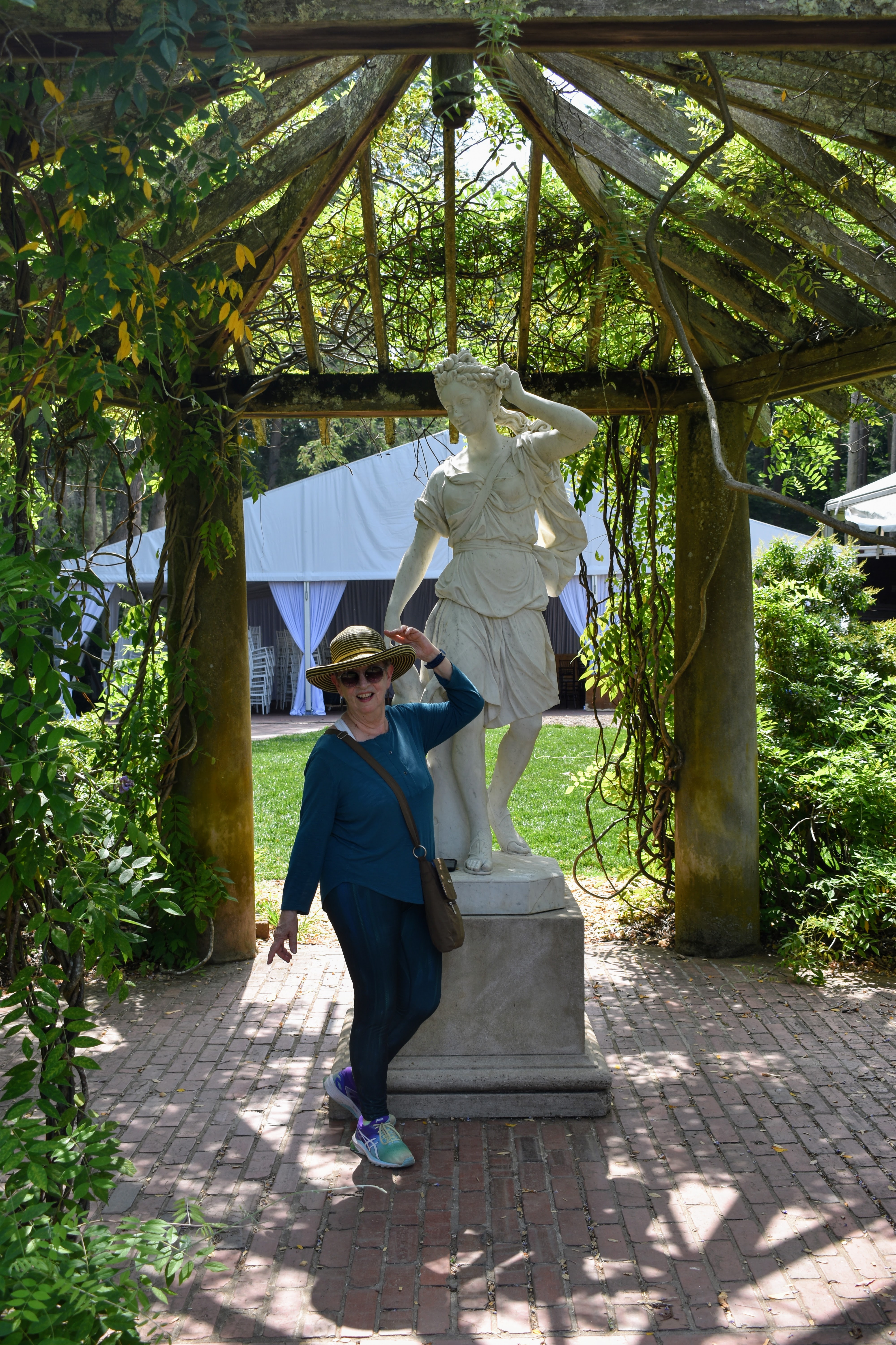 We found our way to the grounds, which was a very easy walk, and decided to go ahead and eat on the lawn overlooking the house. There was a crew setting up some large tents for what we guessed was a wedding reception. We explored a bit up there, as there was a statue of Diana (the Huntress, not Princess Di) and a lovely view, looking down to the house.