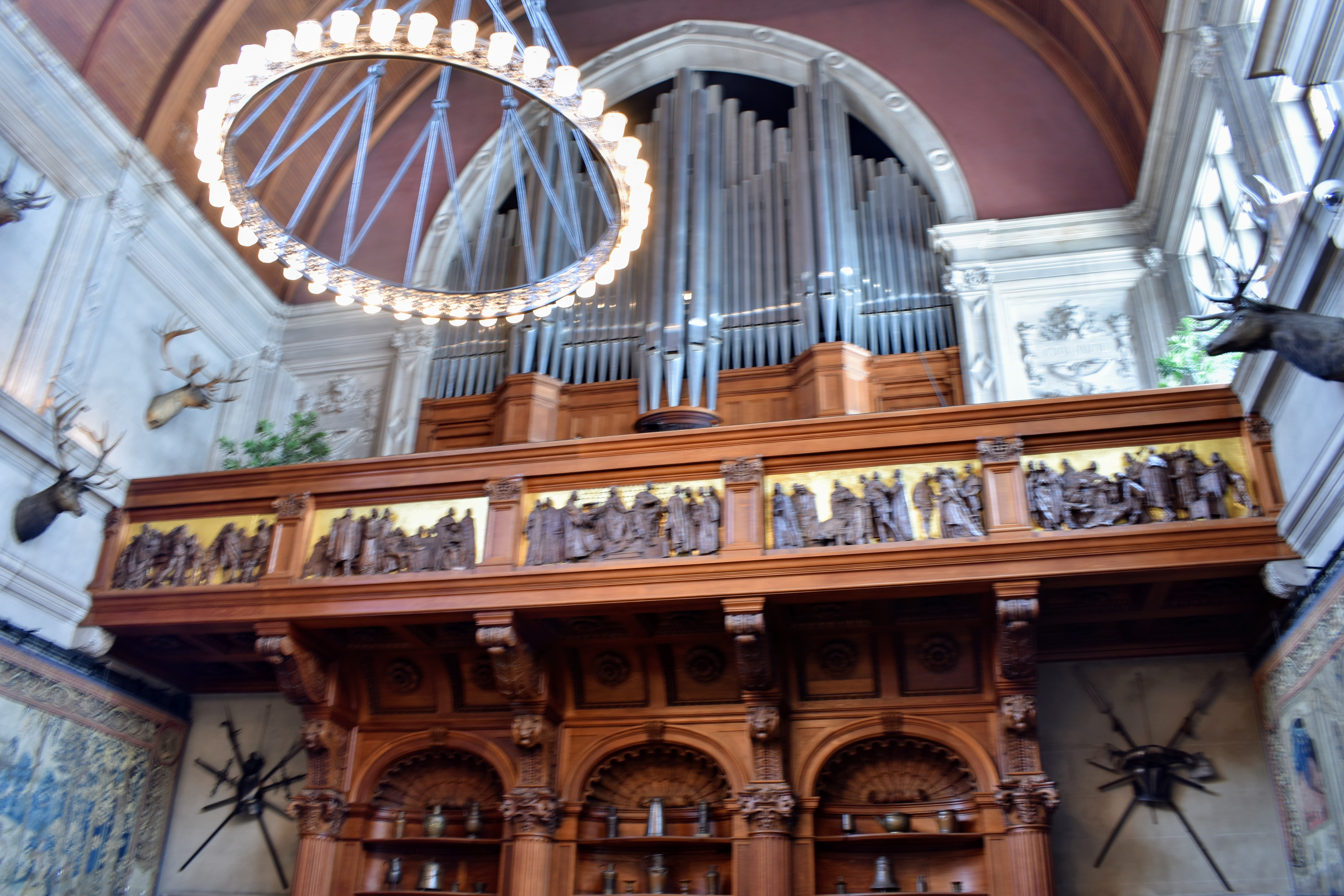 We wandered up the drive and around the front of the house, and by that time it was already 12:15, which was the earliest we could enter. We got in line (surprisingly short) and were ushered through the front door. Fun detail: the doorbells on either side of the door were in the shape of lion heads.