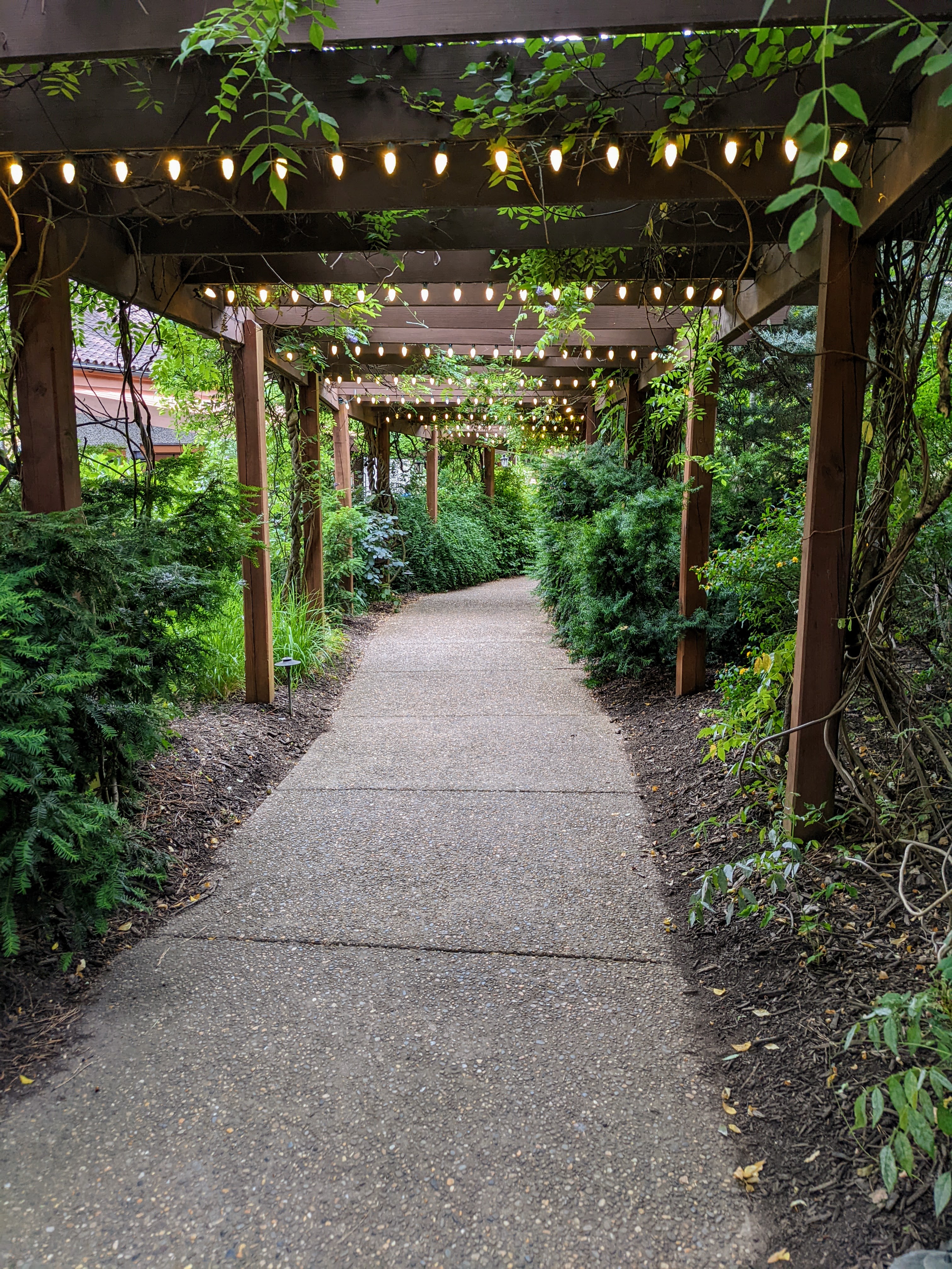 Pergola to the Winery, Hydrangeas outside the Winery,