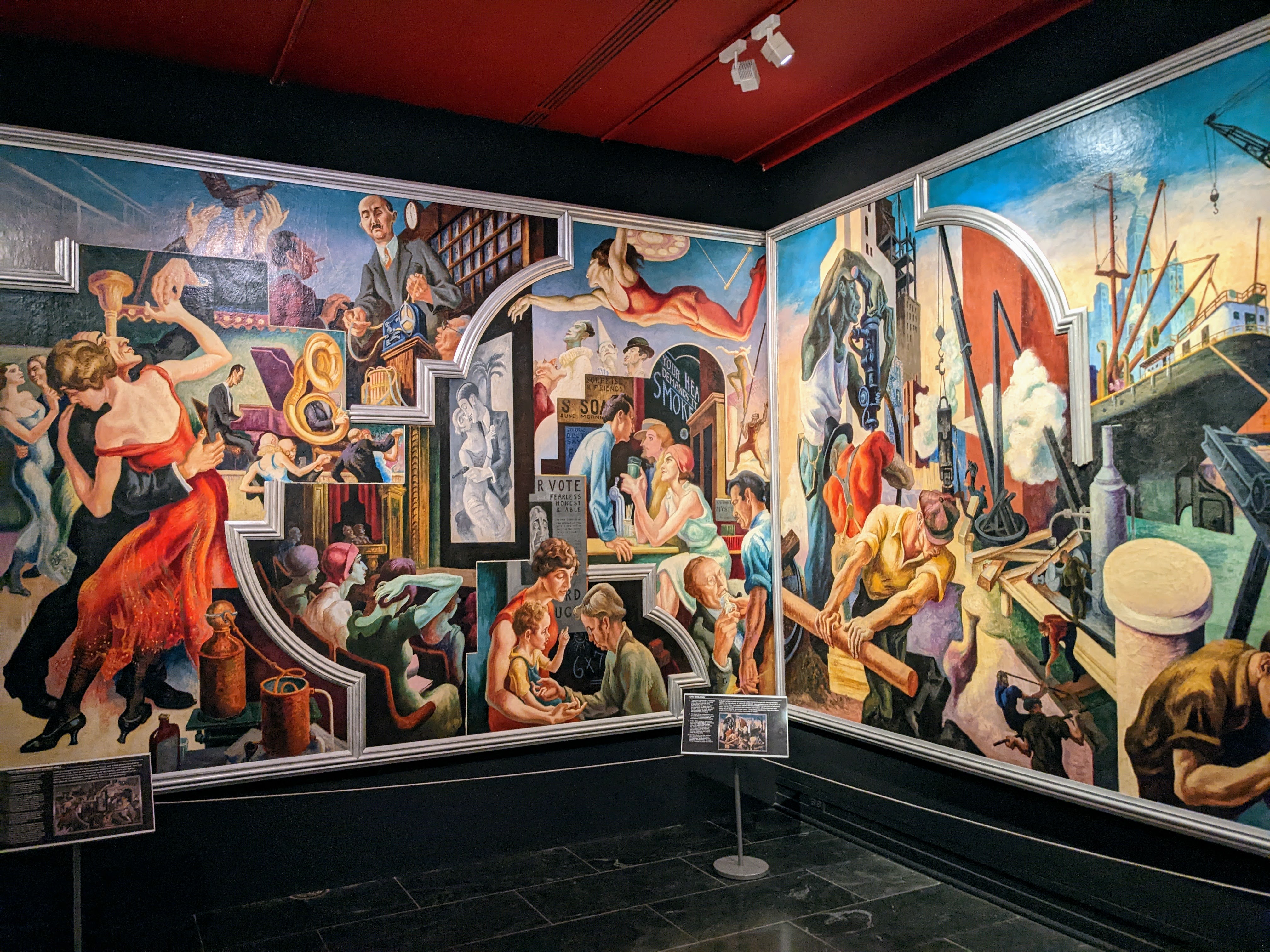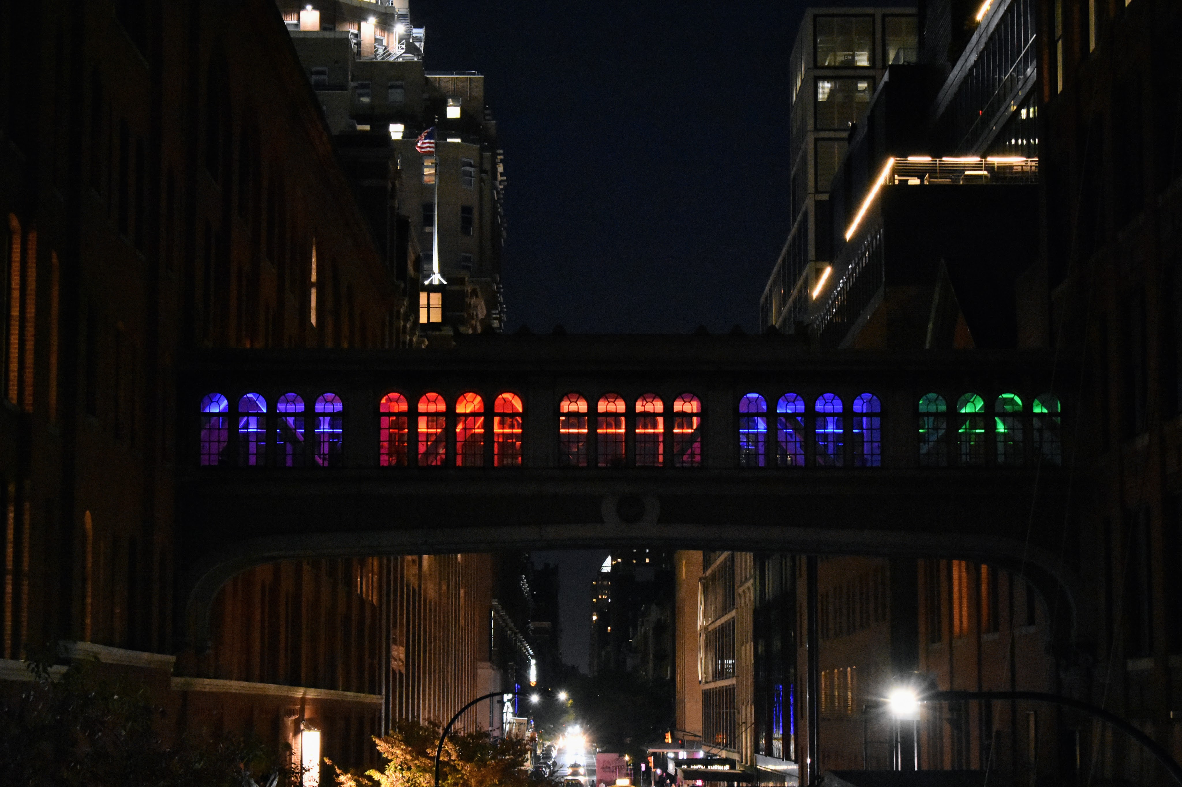 The Vessel was closed (boo) but we were able to walk around the base. Then it was just a block to the High Line. We had enough time that we walked the length of it and back! It was a lovely walk, especially when contrasted to the medieval tournament that NYC sidewalks can become. There were many art installations and murals in amongst the plants and the architecture of the different buildings was so interesting. No food stalls were still open, but we really weren’t hungry! On the way back down the High Line, we got nice views of the Empire State Building and the Chrysler building.