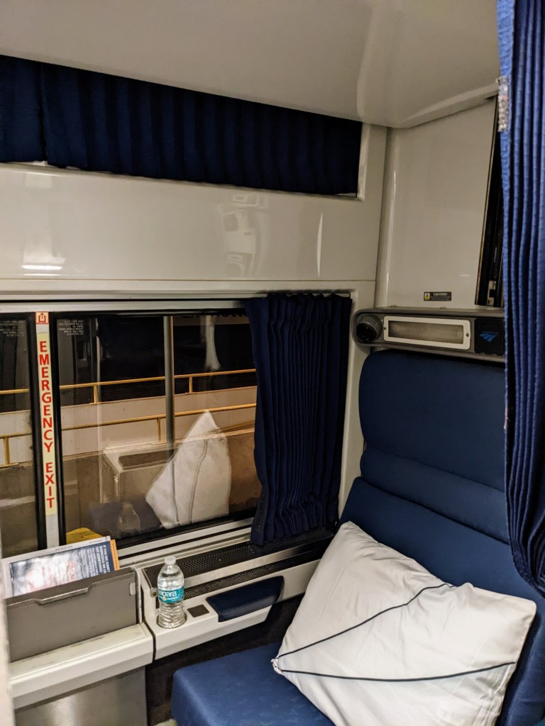 We got up at 6:45 so we could finish putting everything in the bags and leave the hotel by 7:15. We got a Lyft to South Station and were able to wait in the Metropolitan Lounge until closer to our departure time. This would be the longest leg of the trip, overall, with a 4-hour coach ride to NYC and a nearly 13-hour ride in a roomette to Charlotte. With the assistance of a Red Cap, we got to the train a little early, so we got our pick of seats. We ended up on opposite ends of a row so that we’d each get a window seat.