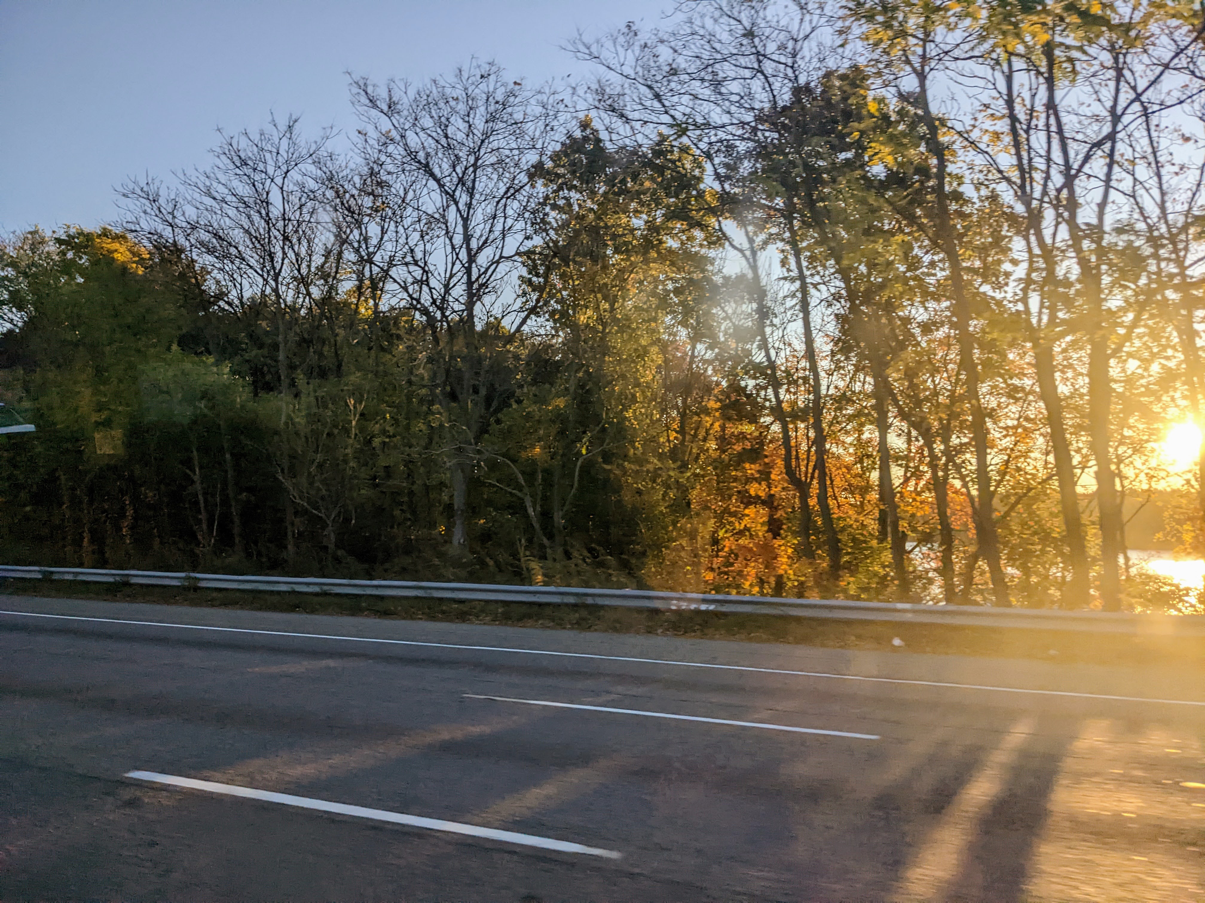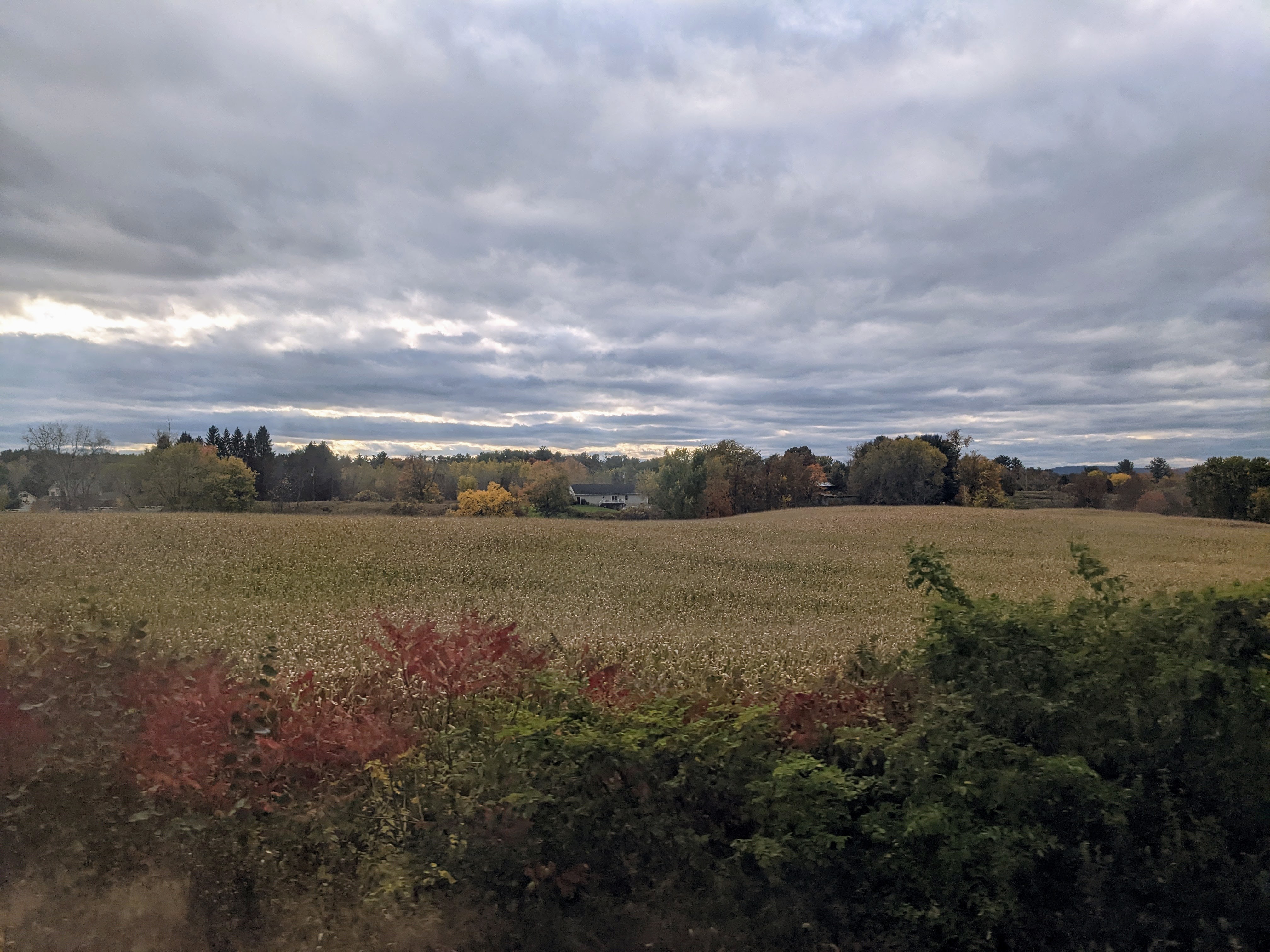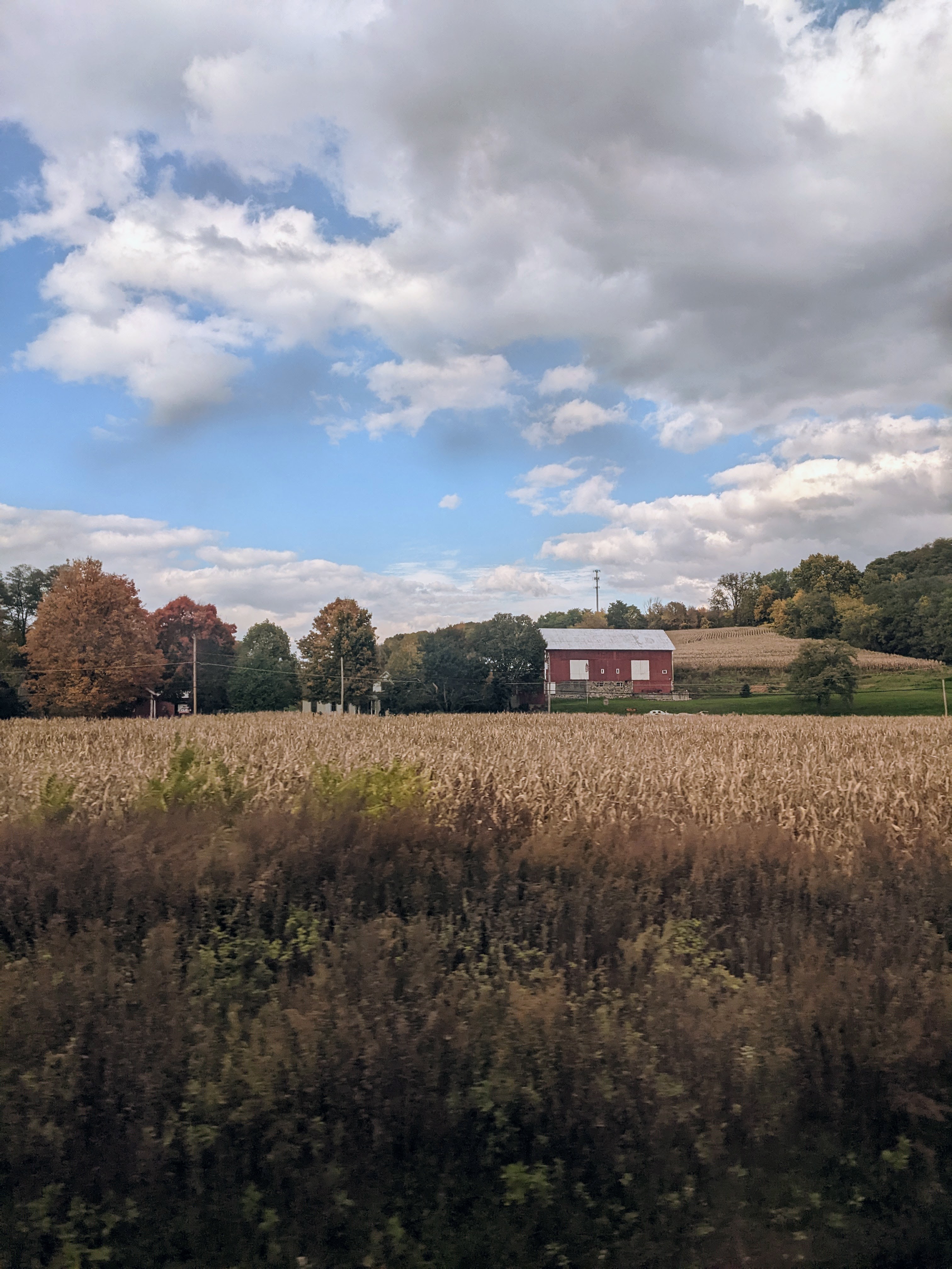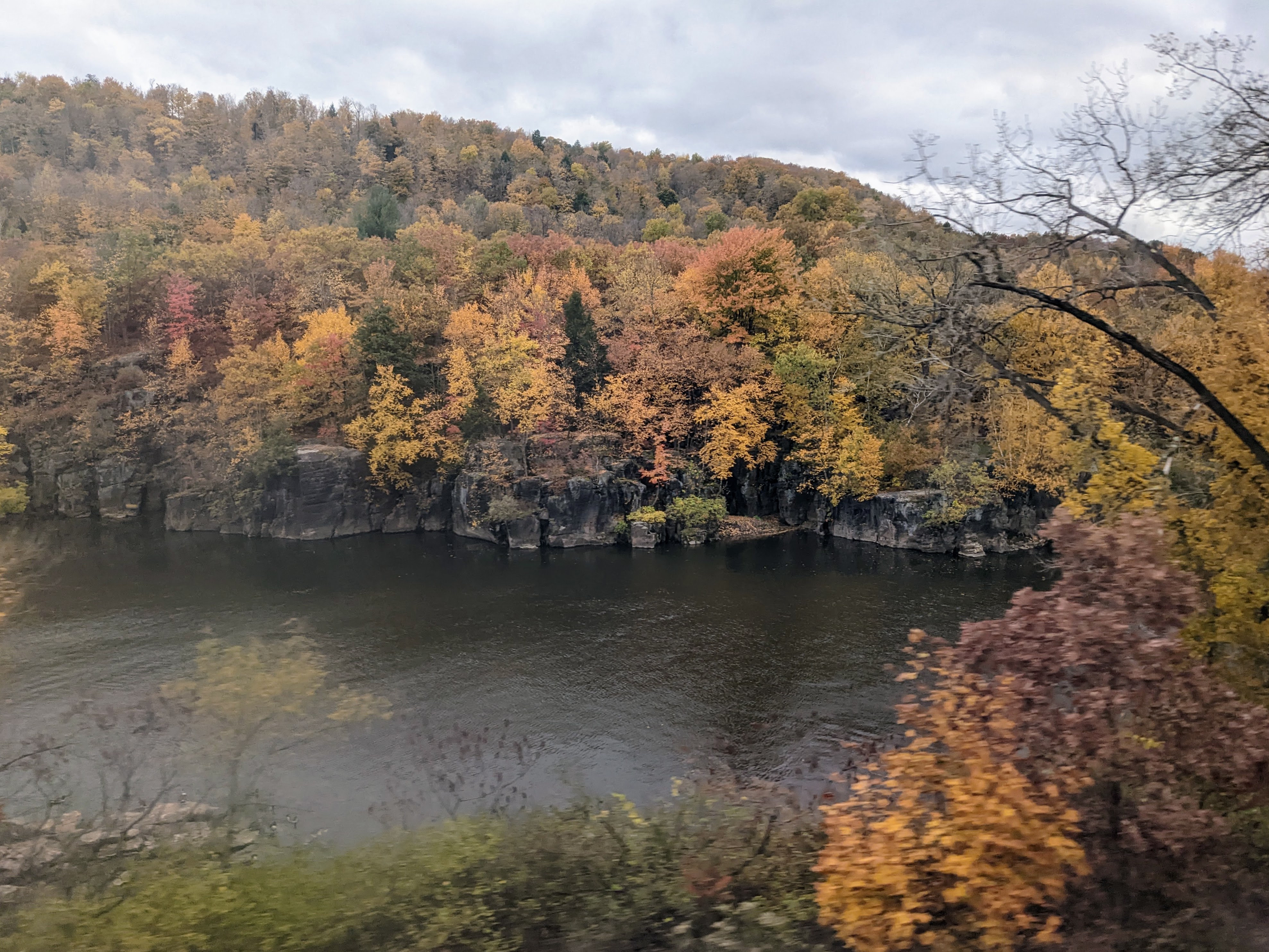 After I woke up, the sun was coming into our roomette somewhat brightly, so we adjusted the curtains so as not to be blinded. I could still see the beautiful Virginia foliage through the gap we left in the middle. I alternated reading and watching the scenery for a bit.