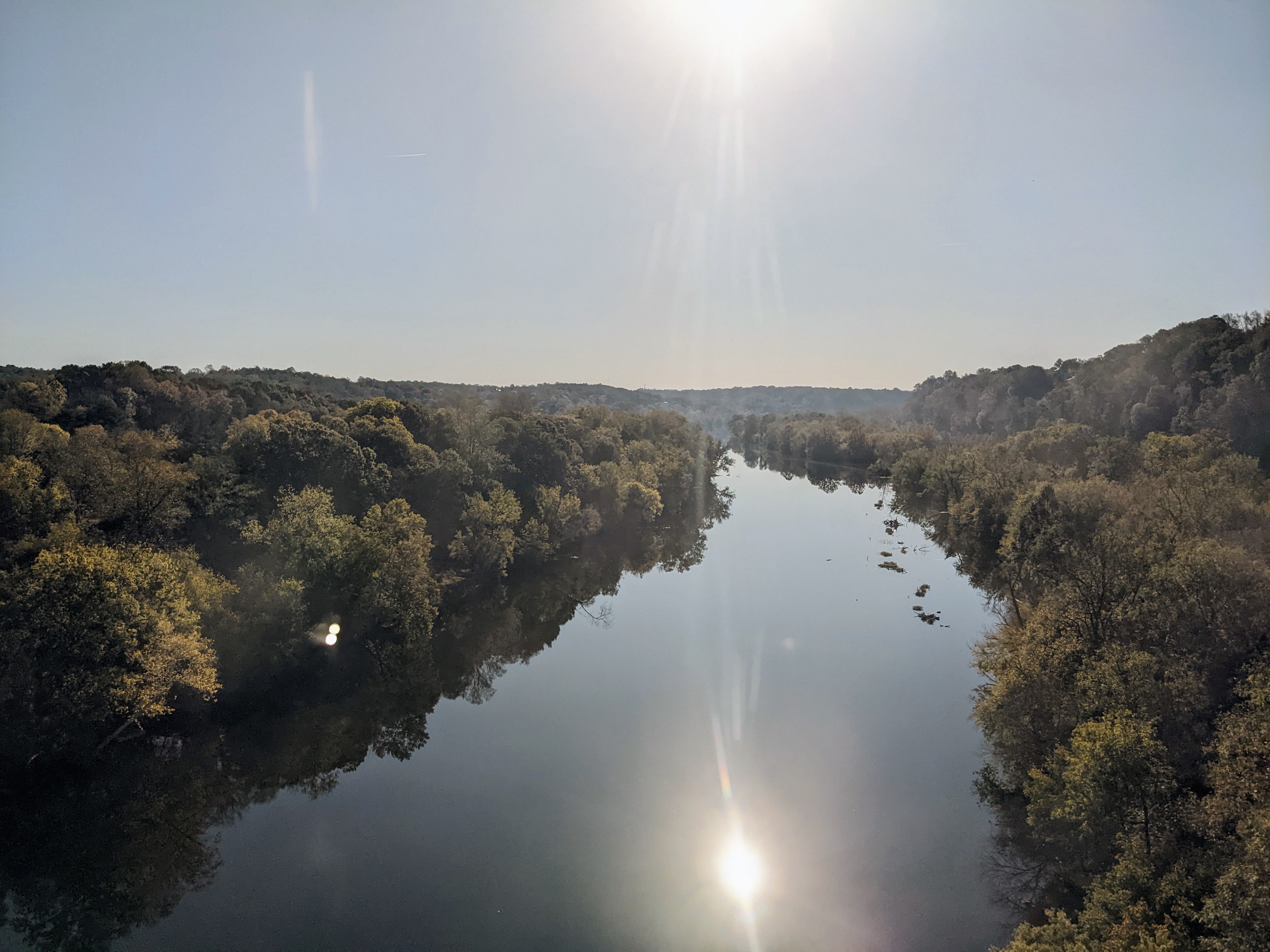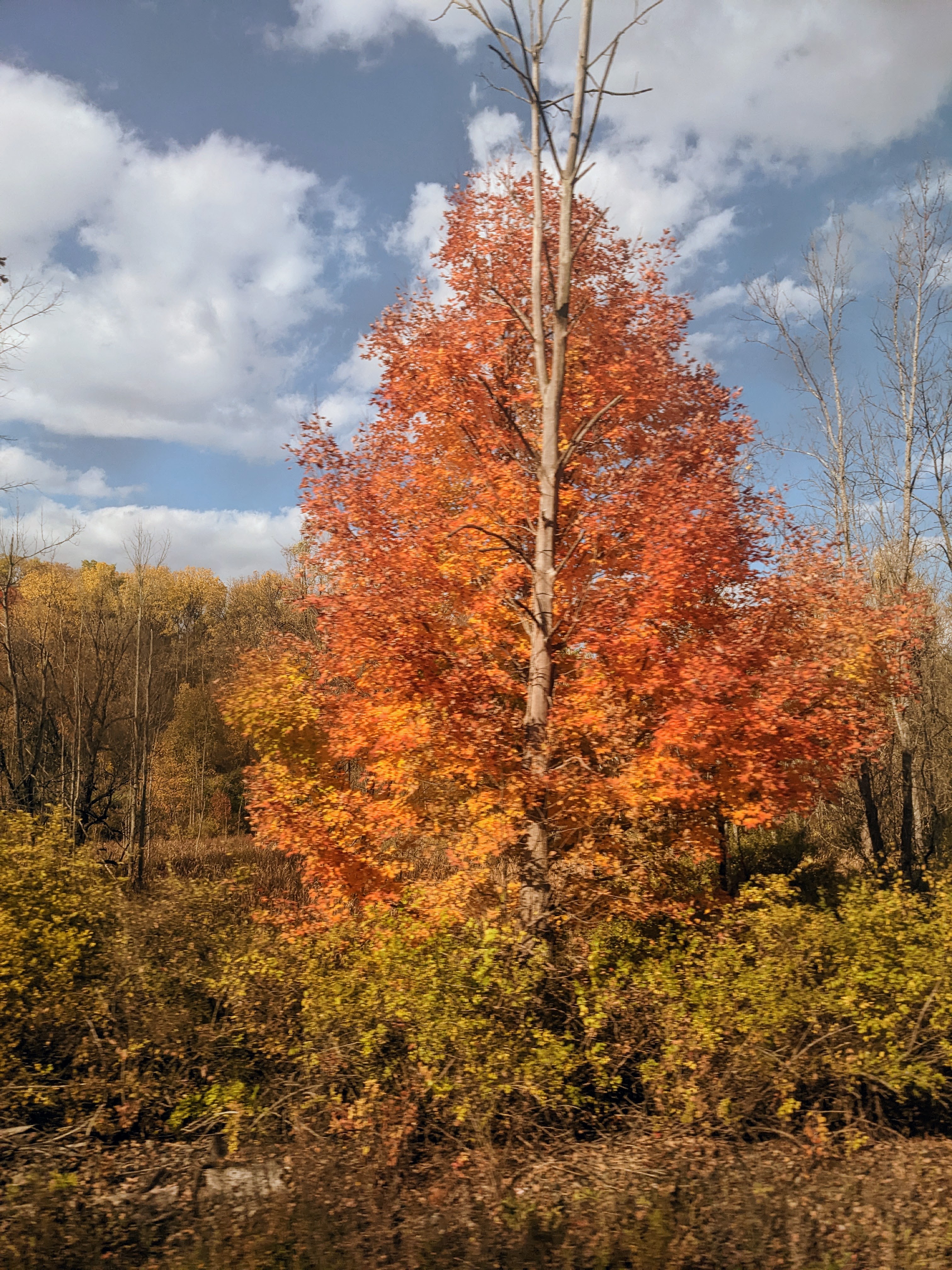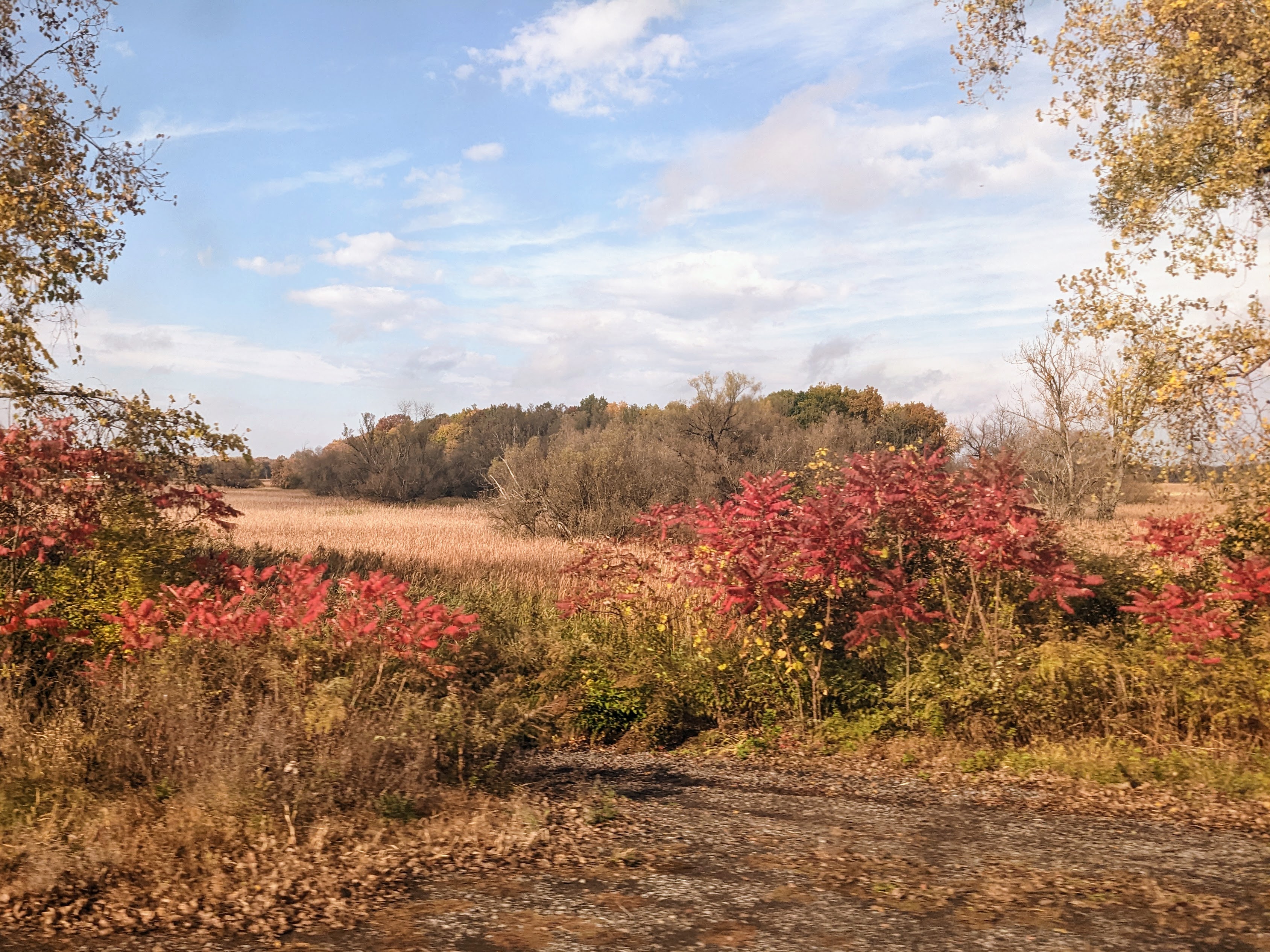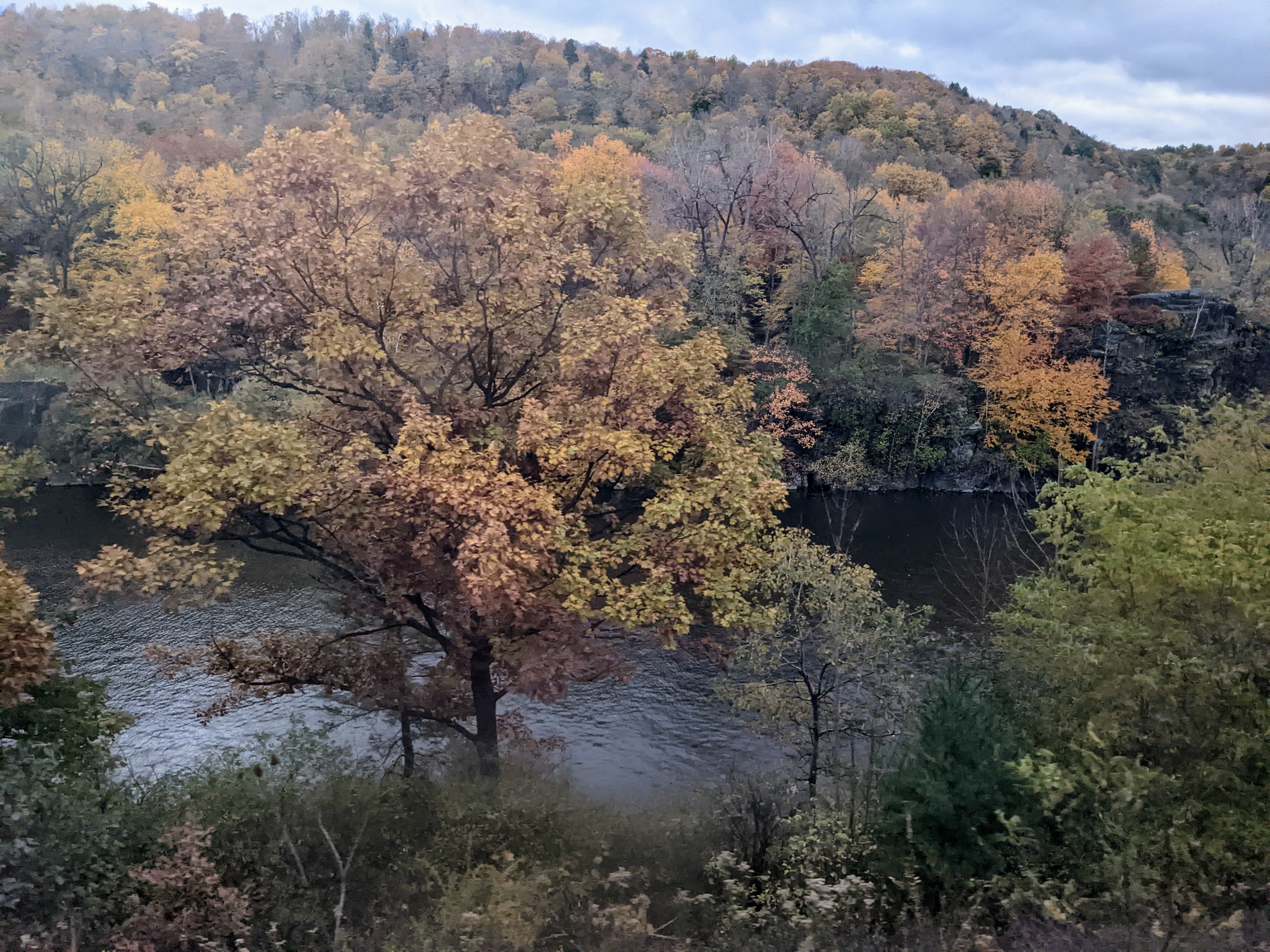 After I woke up, the sun was coming into our roomette somewhat brightly, so we adjusted the curtains so as not to be blinded. I could still see the beautiful Virginia foliage through the gap we left in the middle. I alternated reading and watching the scenery for a bit.
