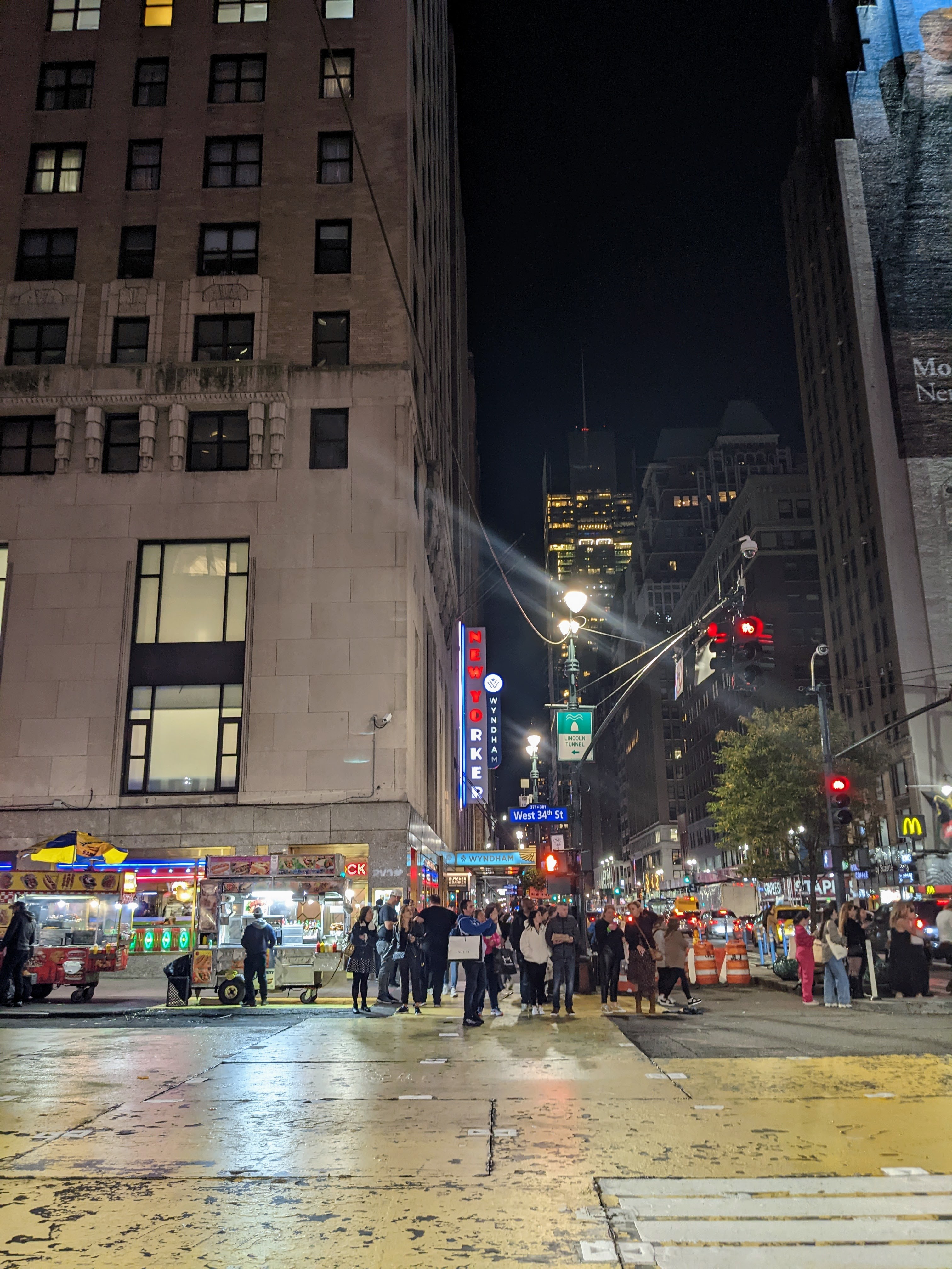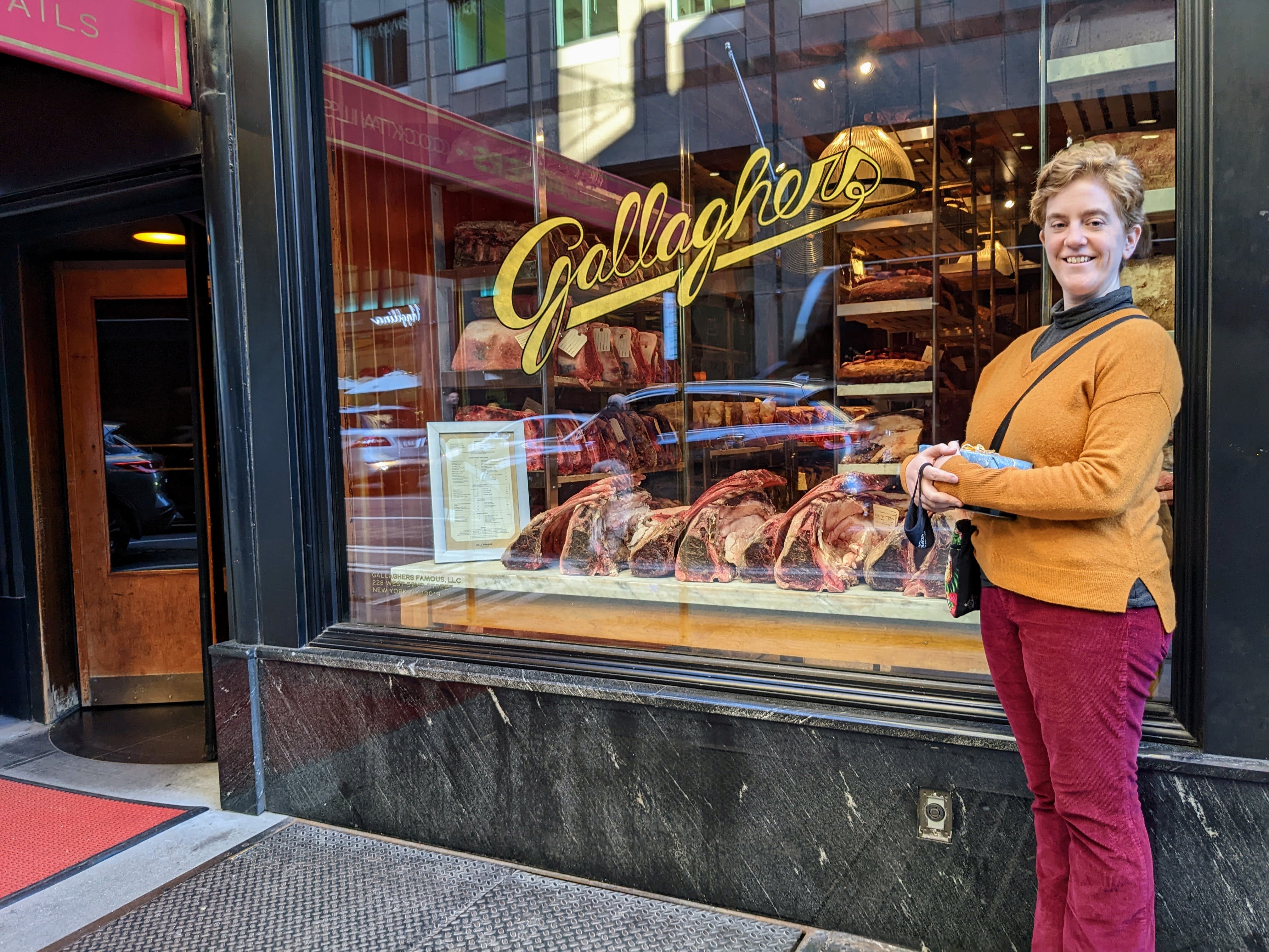 Back at the train station, Mom got a yogurt parfait and I got a small panini in the Metropolitan Lounge before we grabbed our bags. There didn’t seem to be a great place to get a taxi and not many taxis in the area anyway, so we decided to schlep ourselves down to the hotel. It was about 20 blocks down and 2 blocks over. There were a couple of blocks where the traffic got particularly bad, so we were rather glad we’d decided to walk. We also ended up passing Gallagher’s, which is where a friend would be taking us to dinner on Sunday. And it was about 2 blocks from the hotel!