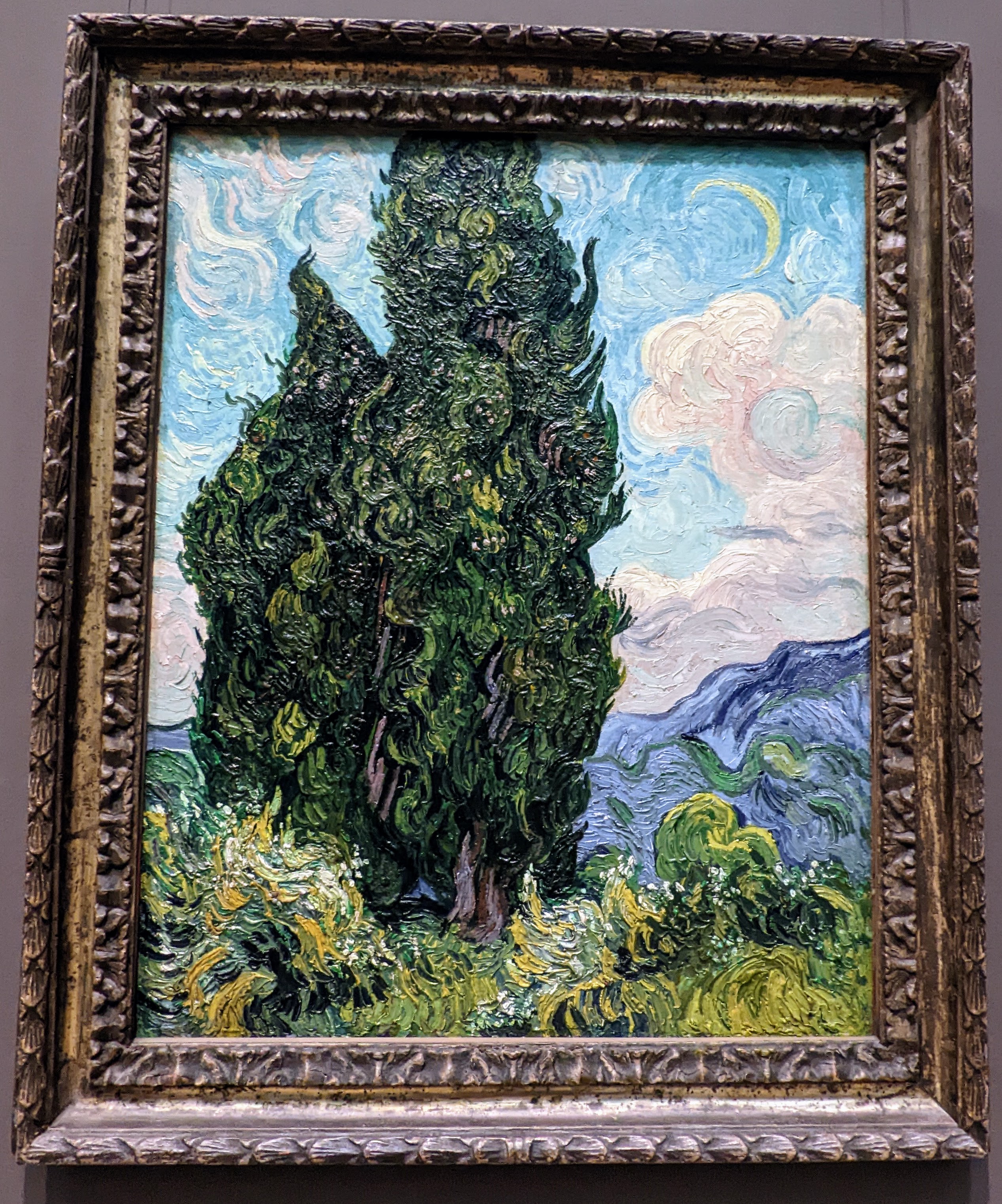 Monet & Friends used scent to drive the immersive experience as well. It was supposed to be a mix of lemon, pine, musk, and other layers of scent meant to evoke the experience of en plein air. It was wonderful to have that added layer of sensory immersion. The video exhibit was divided into three parts or themes in order to kind of organize the presentation, and each part included art from a variety of Impressionist artists, as well as quotes and other media relating to that theme. We sat through about one and a half full runs of the whole thing, and would have stayed longer (we moved seats a couple of times) except someone came through to say that they were closing in 15 minutes! And we still had to go to the gift shop!