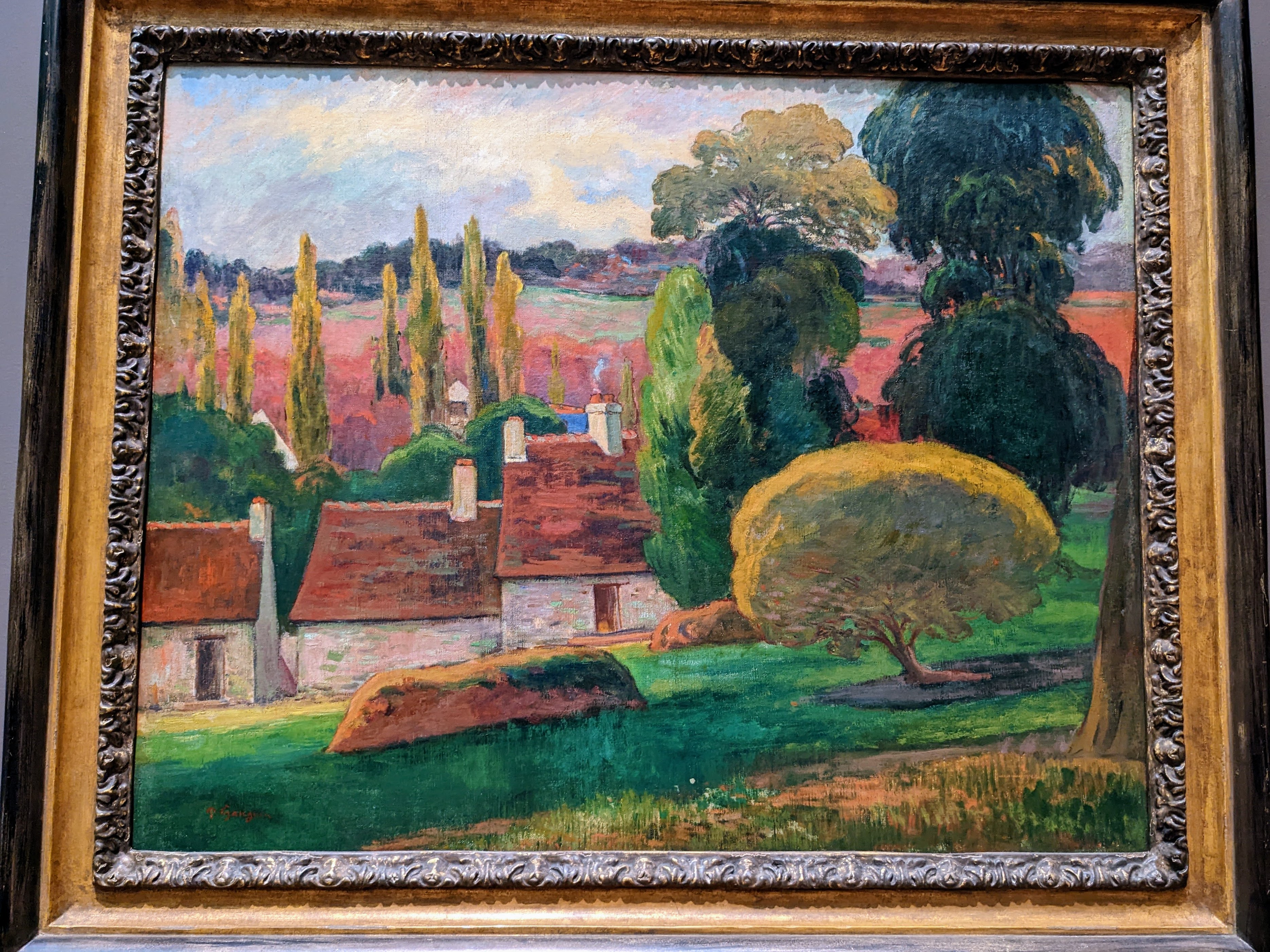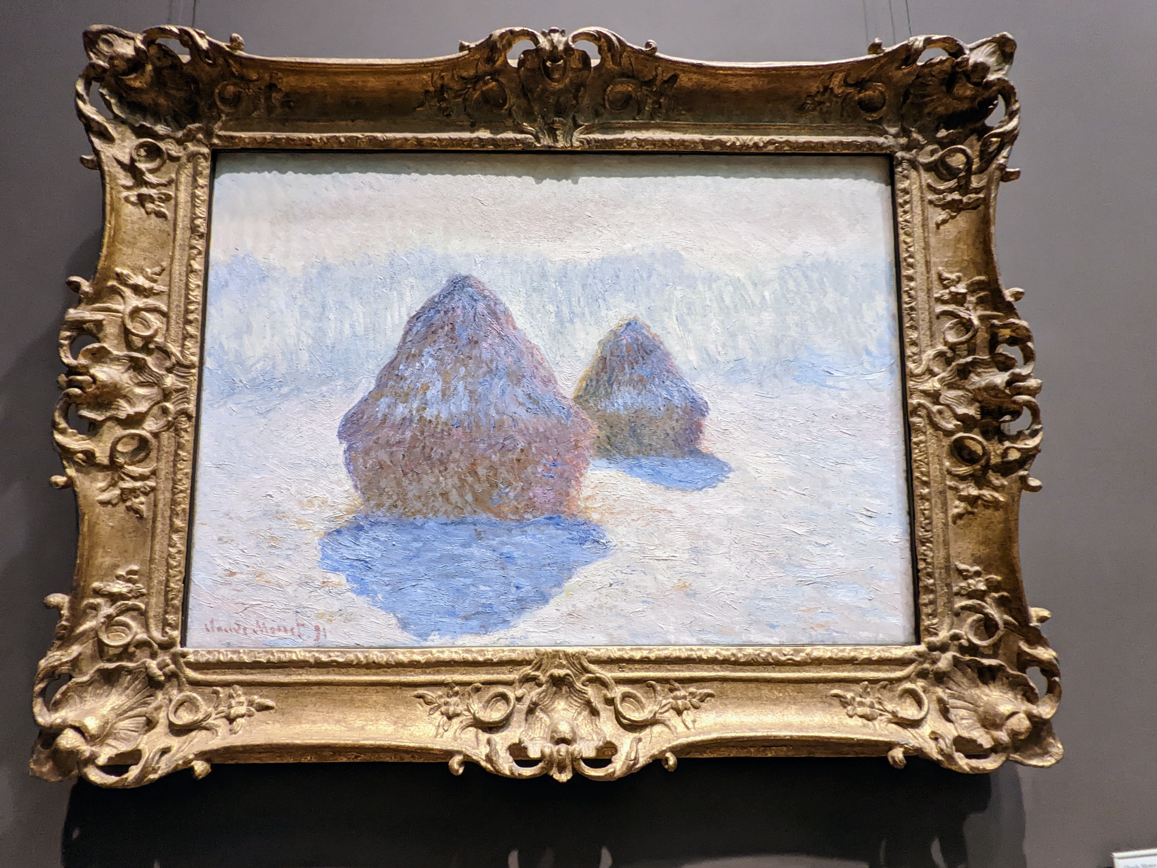 We drove the couple of miles (!) to Deerpark, which is a small complex of buildings, comprising a restaurant, the Amherst event center, and the Carriage & Trail Ride Barns. We found a shady spot and walked over to Amherst, where the Monet & Friends exhibit was taking place. We got there about 4:15 and were let straight in. The exhibit itself was divided into two parts: one area where you could read many informational panels on the artists featured, the history of the Impressionist movement, and some of the contextual events of the time. Of course, we started there!