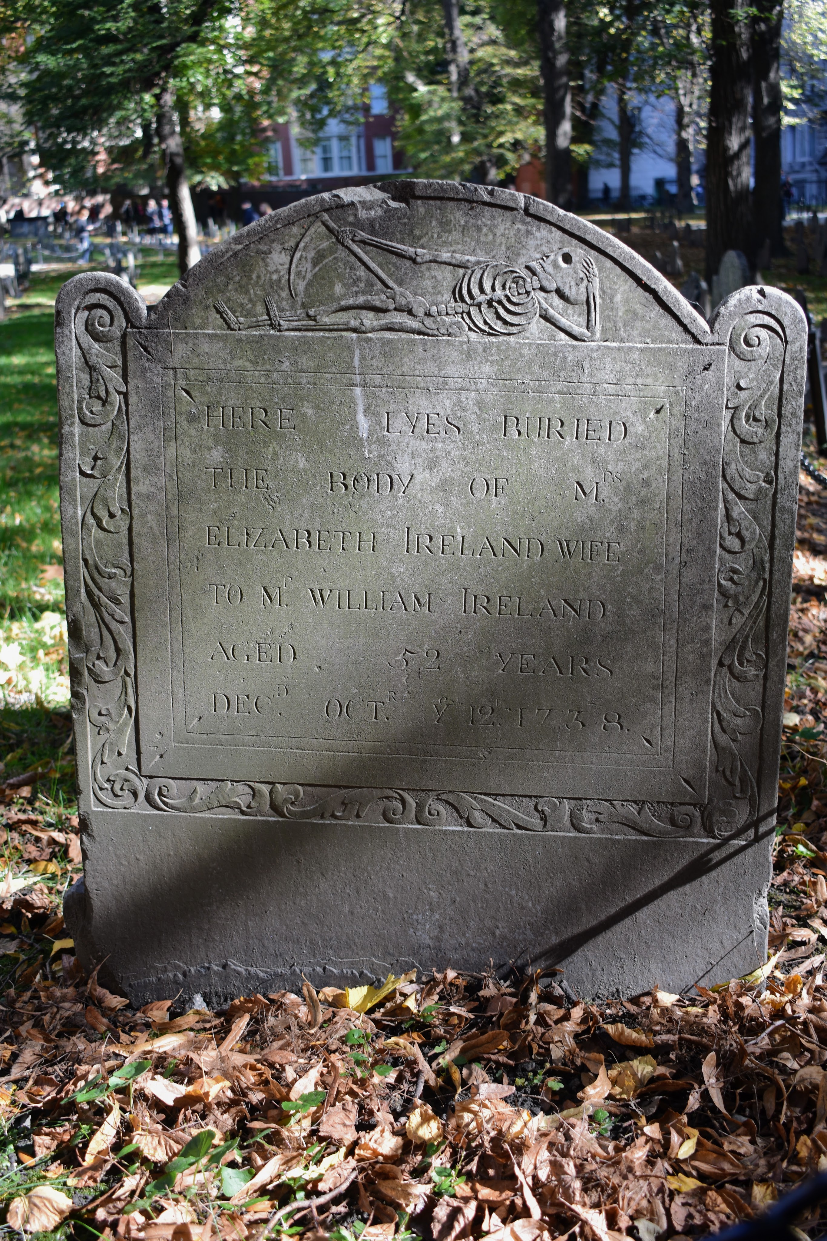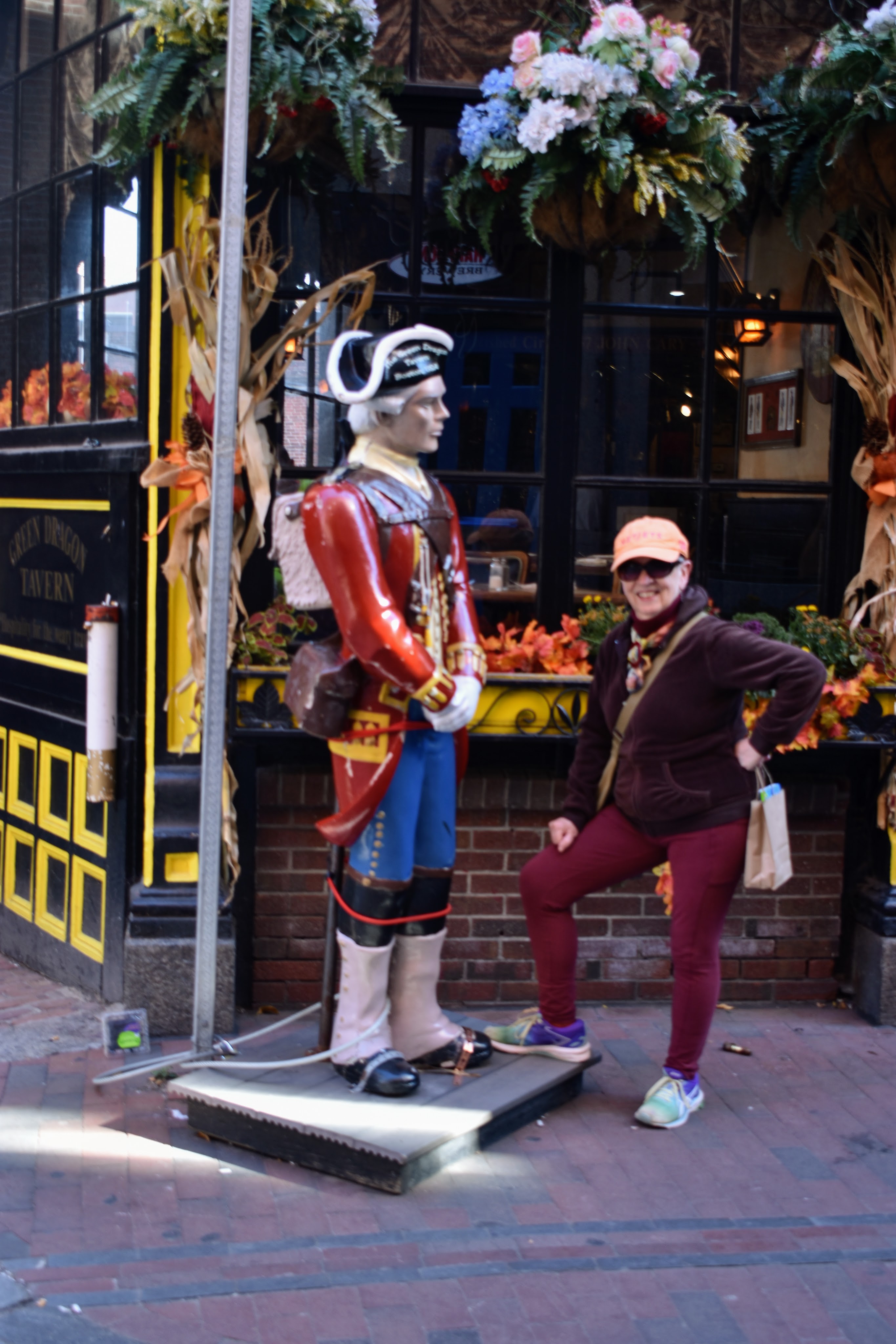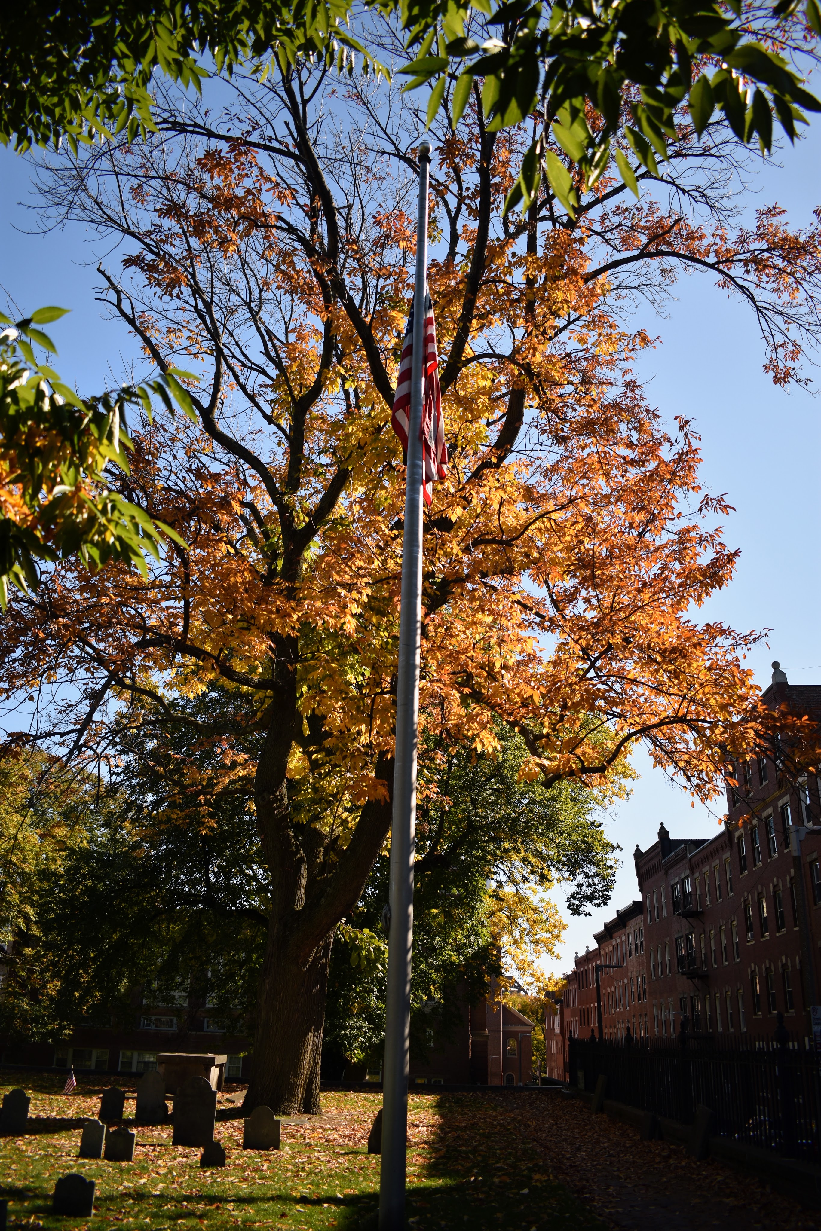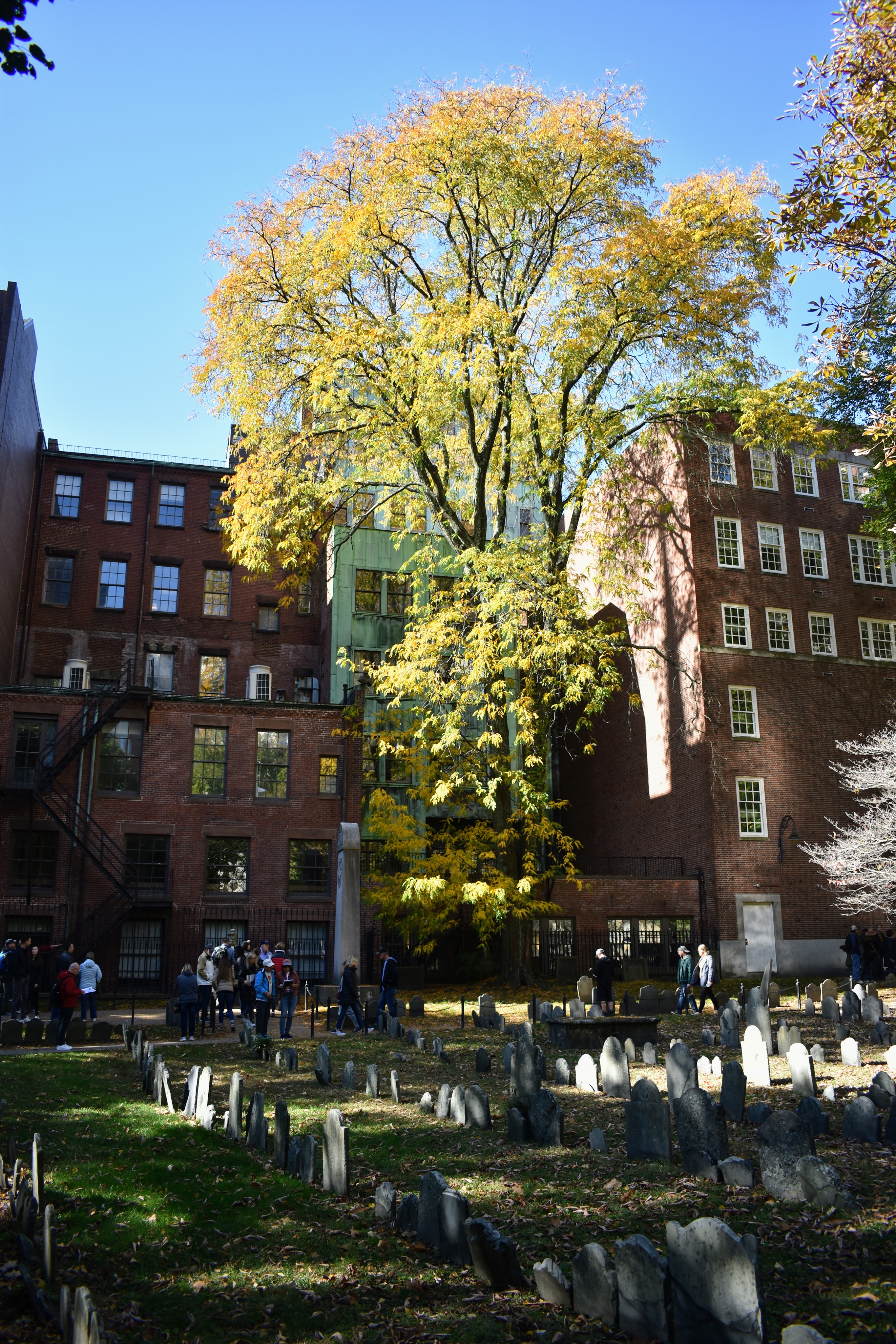 We started at Shaw’s Monument, across the street from the State House. Then, we walked back down through the park to the Park Street Church. We lingered at the Granary Burying Ground in order to see the resting places of many iconic figures, like Paul Revere, Samuel Adams, and Mother Goose. A man had positioned himself just outside the cemetery and had guides he had compiled himself to take through the cemetery. We were very appreciative of that as we wouldn’t have found some of the significant areas without it.