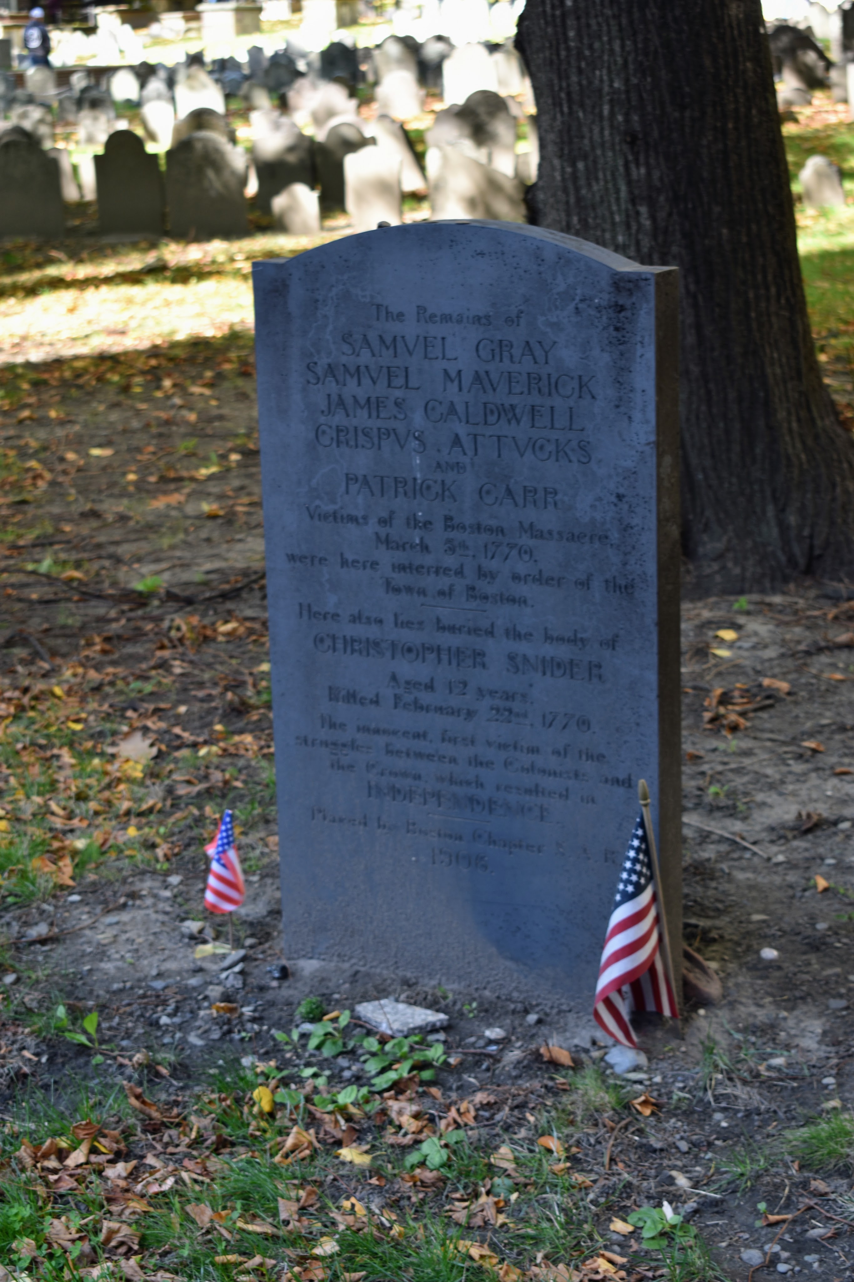 Marker for the victims of the Boston Massacre, Granary Burying Ground