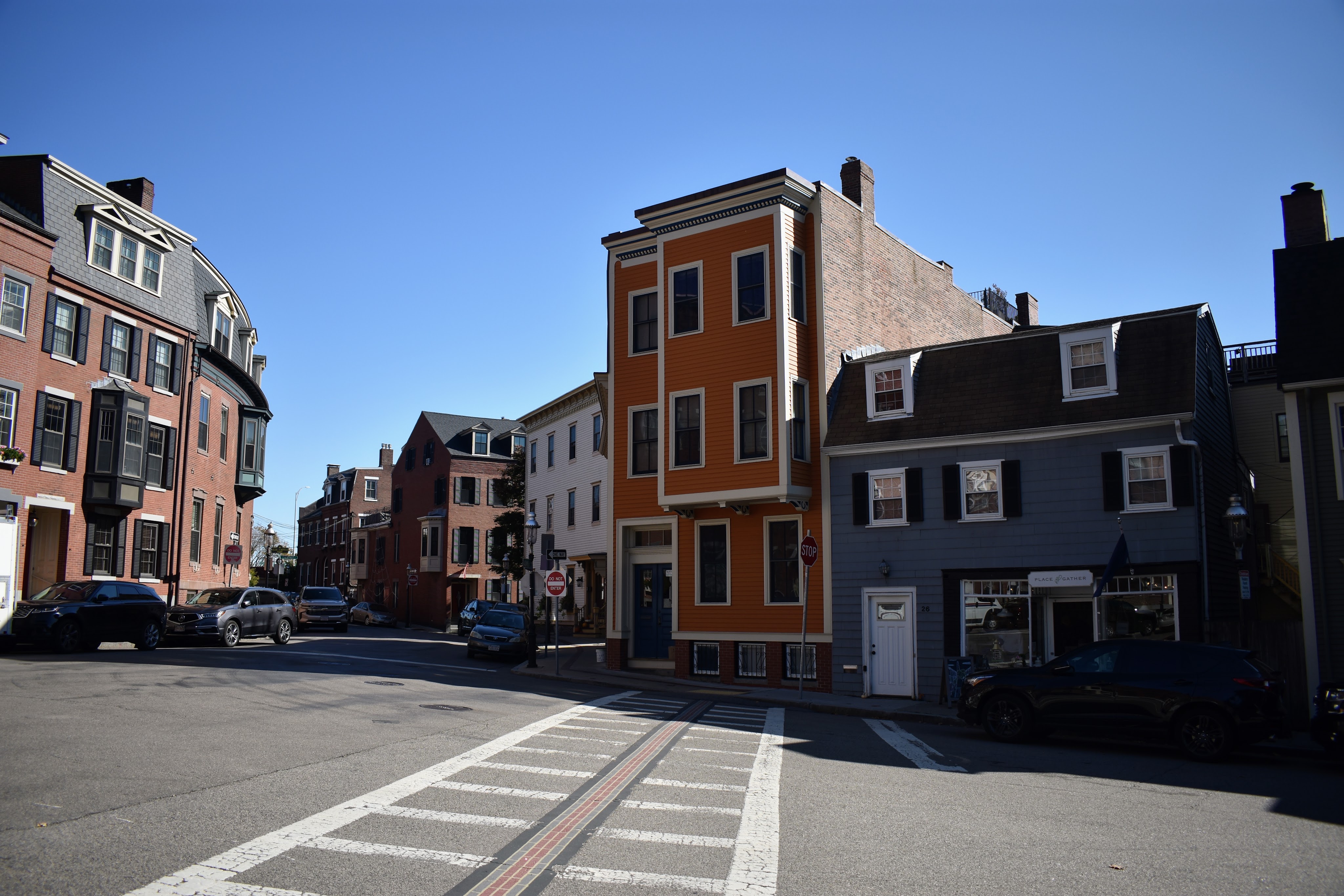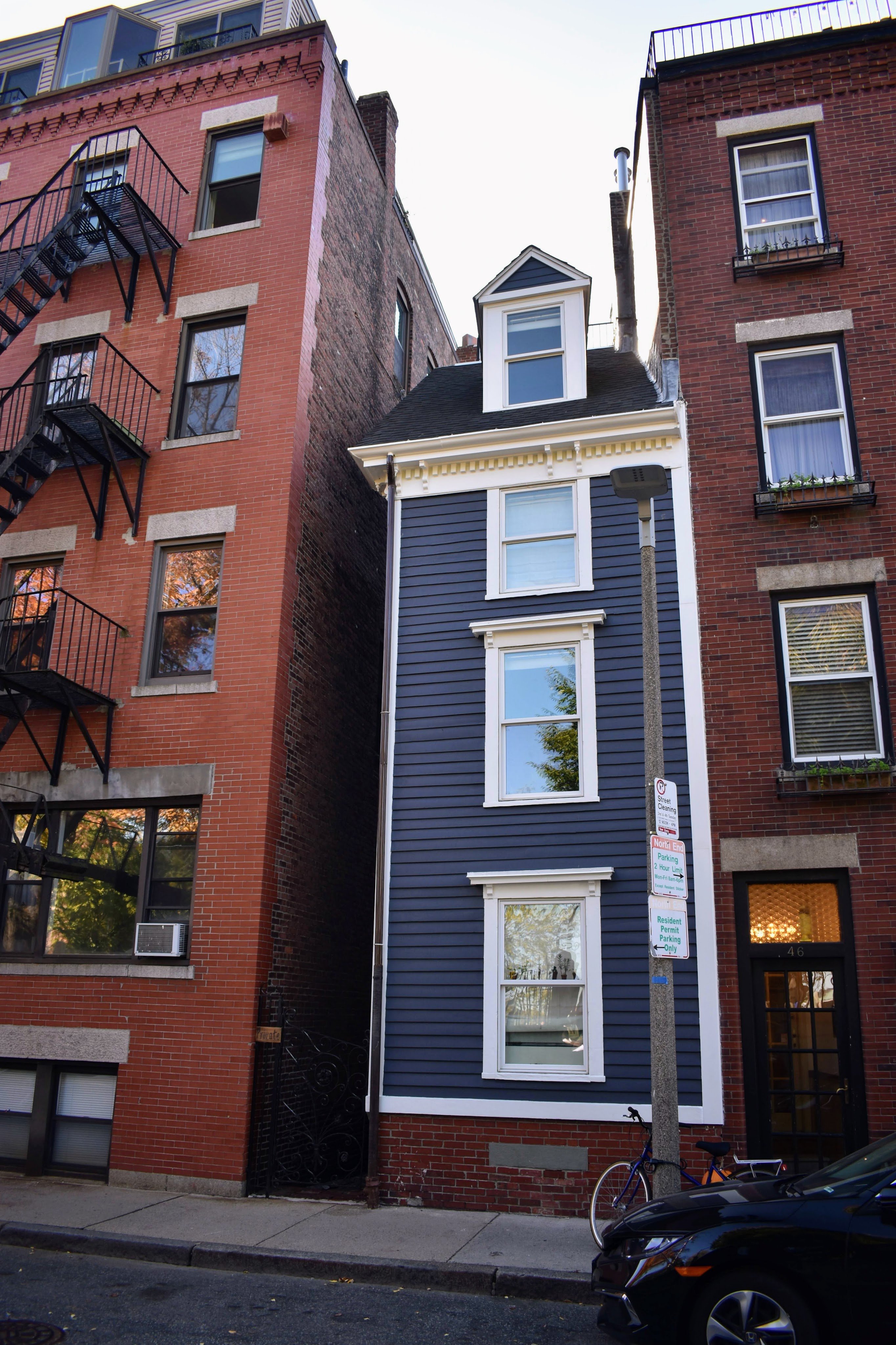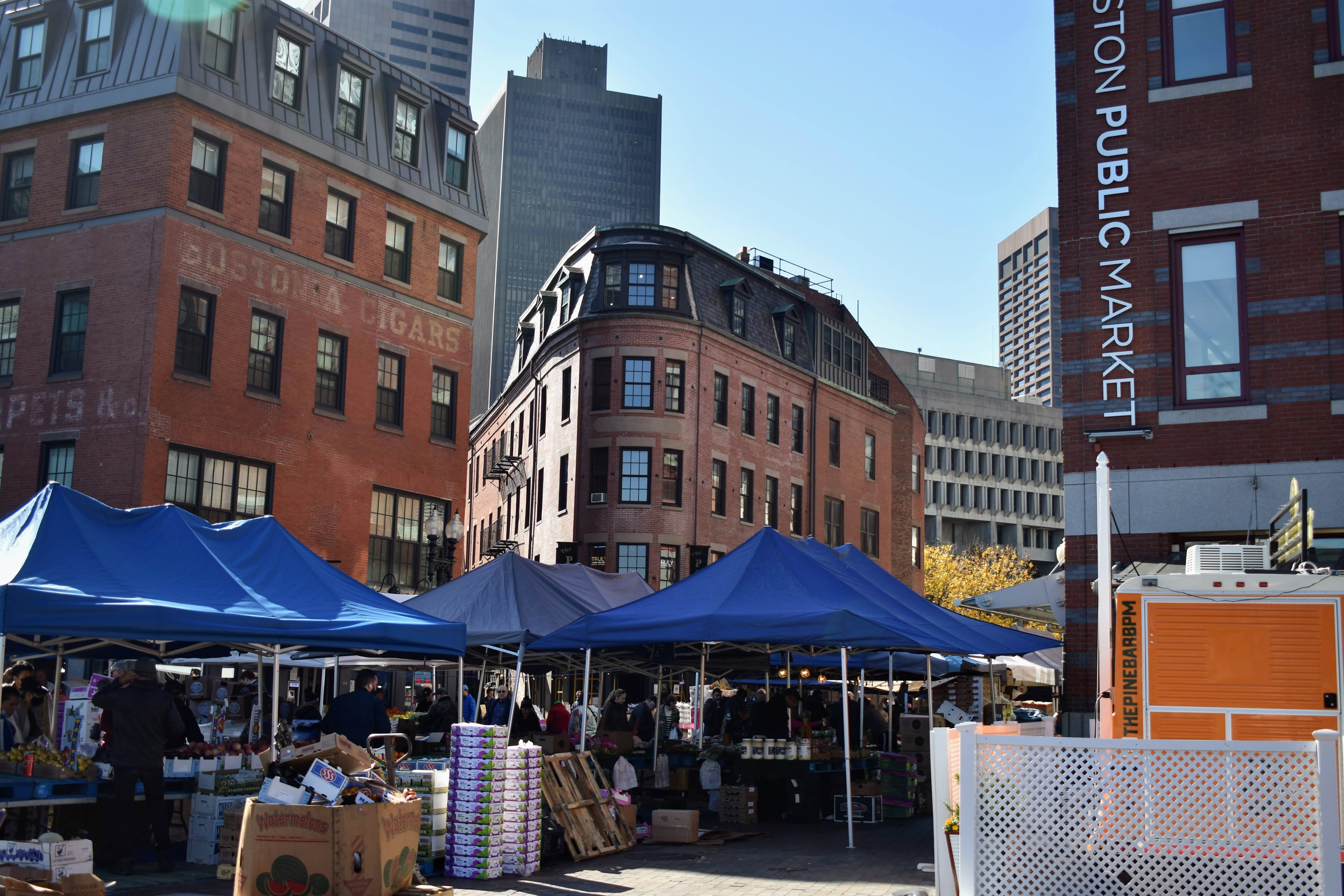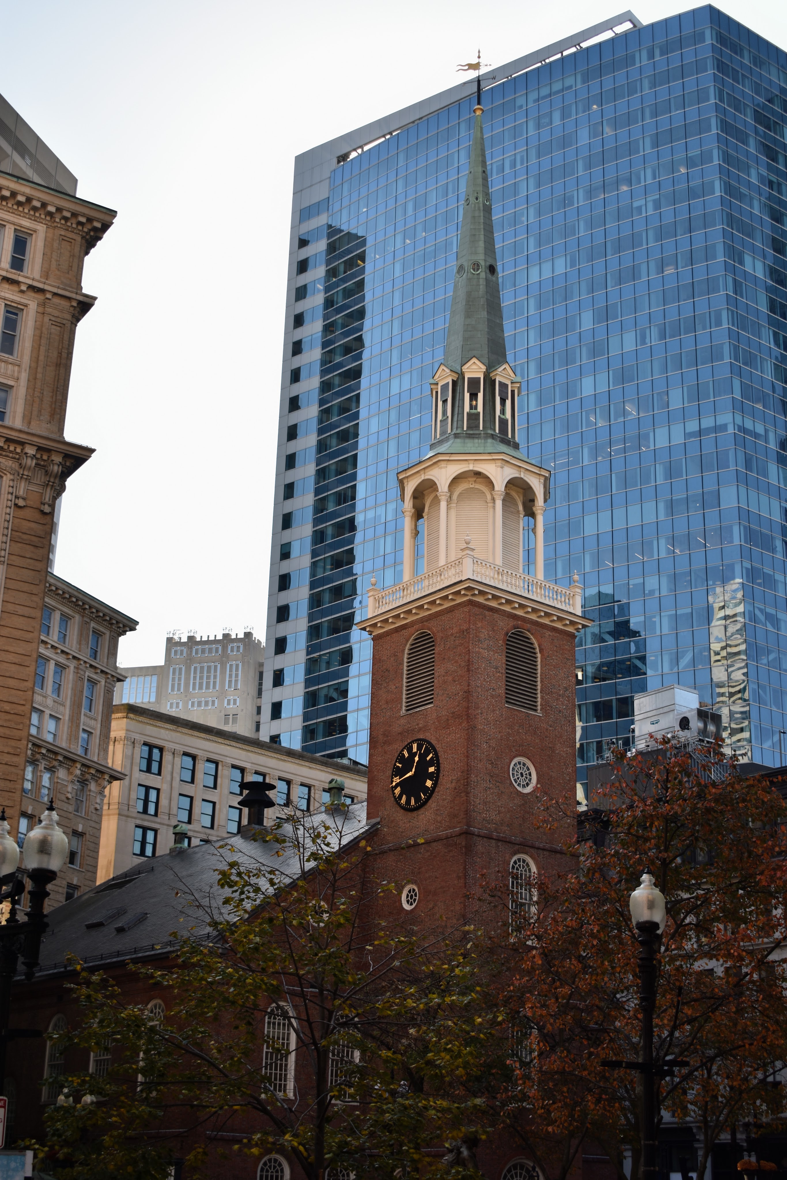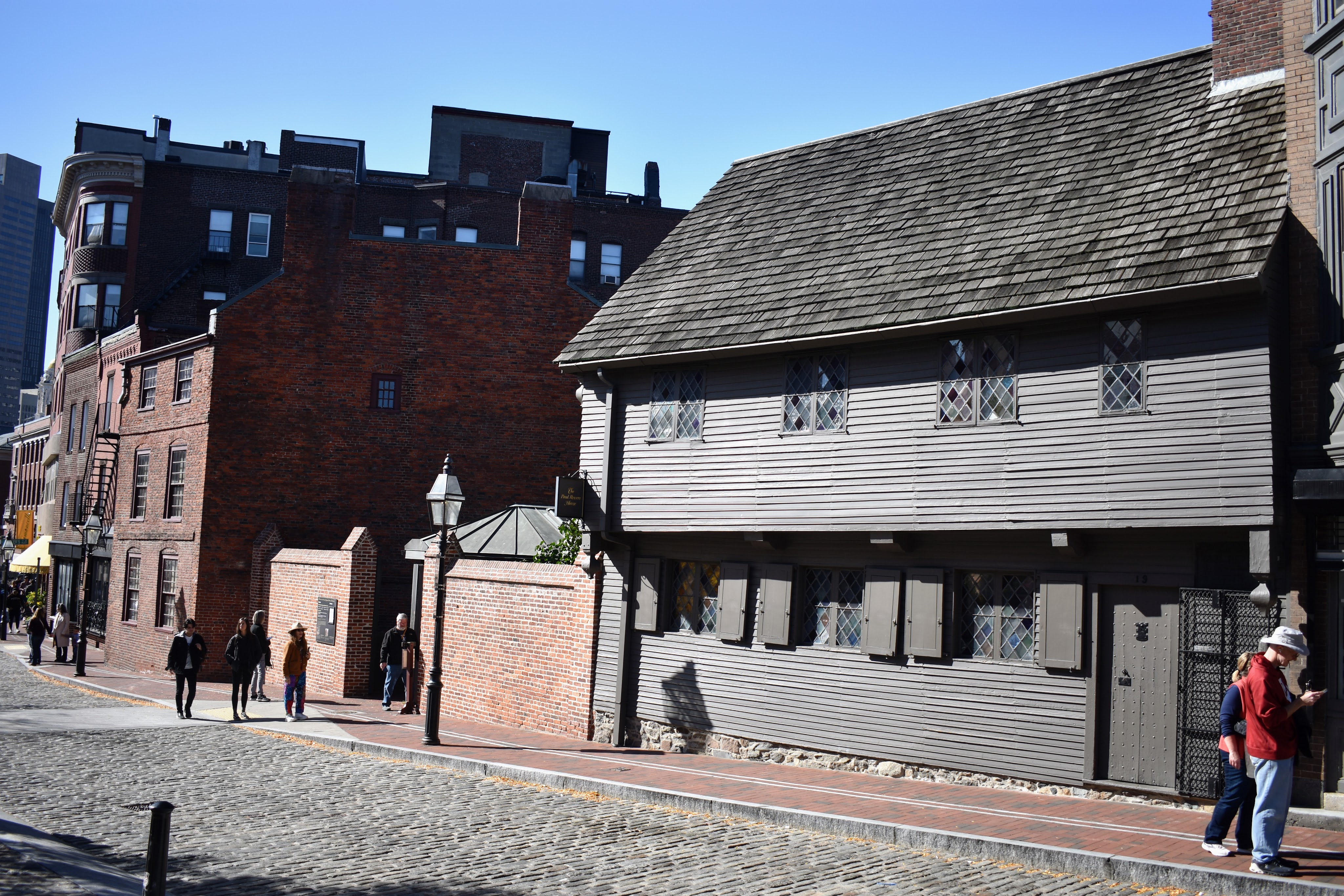 We didn’t linger nearly as long at King’s Chapel, the Boston Latin School Site, Old Corner Bookstore (now the Old Corner Chipotle), Old South Meeting House, or Old State House. In fact, the rest of the walk, we followed the brick path that delineated the Freedom Trail and just paused briefly to take in the sites like Faneuil Hall, the Paul Revere House, and the Old North Church before we walked on. We went into the Copp’s Hill Burying Ground just to see it better, but didn’t poke around. Some of the sites we saw along the way were just about as interesting as the official sites on the Freedom Trail, like the façade on the Tremont Temple Baptist Church, the farmers market we walked through, or the extremely narrow house across from Copp’s Hill Burying Ground.