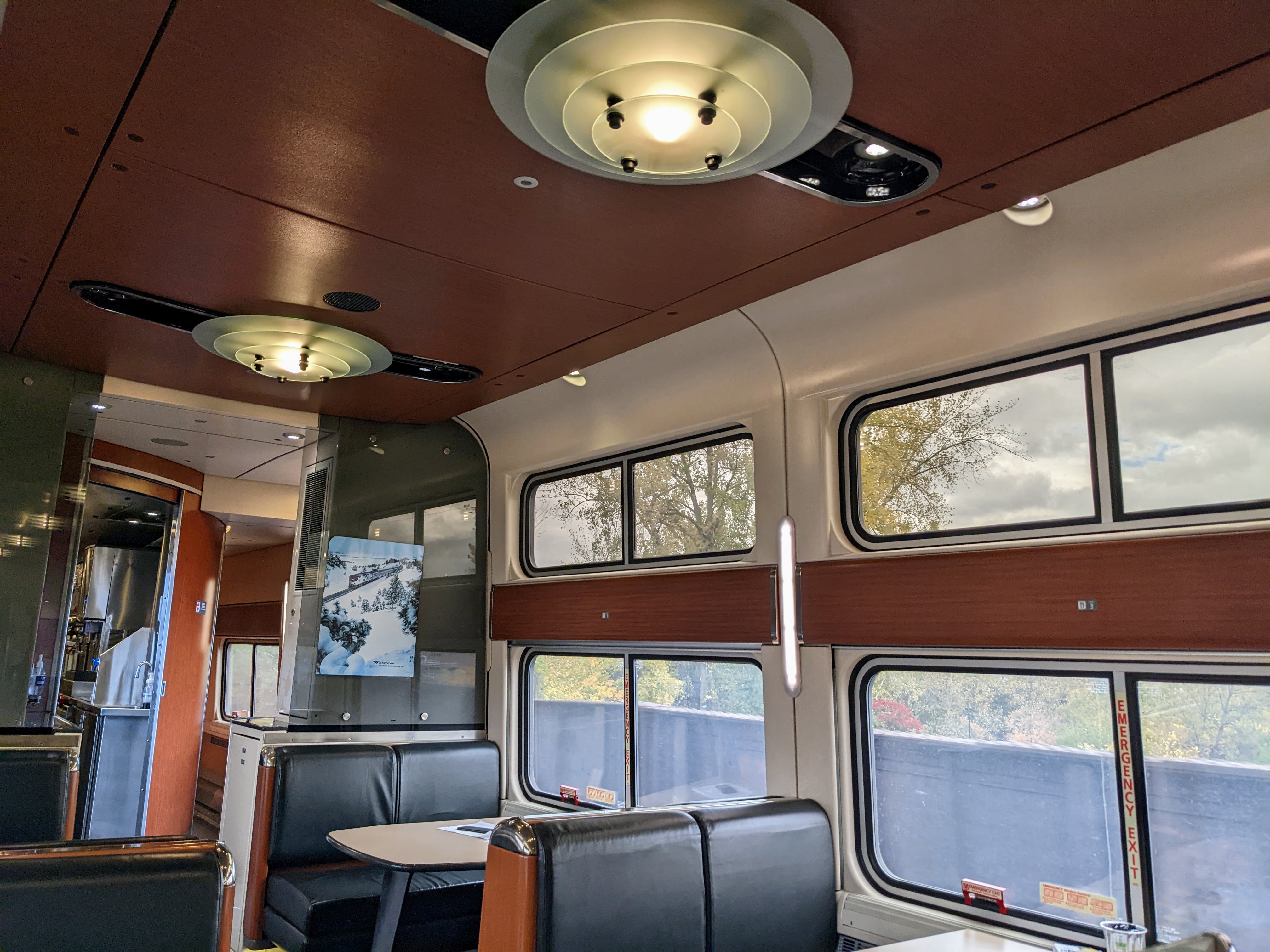 In New York, we went to the Metropolitan Lounge in Moynihan Train Hall to get some lunch. We also got some small snacks to take with us. When we were called down to our train, we had to wait in line for a few minutes before going down the escalator to the platform. Well, apparently no one knows how escalators work because there was a traffic jam at the bottom where several people had stopped to talk to the conductors, and there were several of us yelling for folks to move so no one would be crushed. Escalators don’t stop automatically, after all.