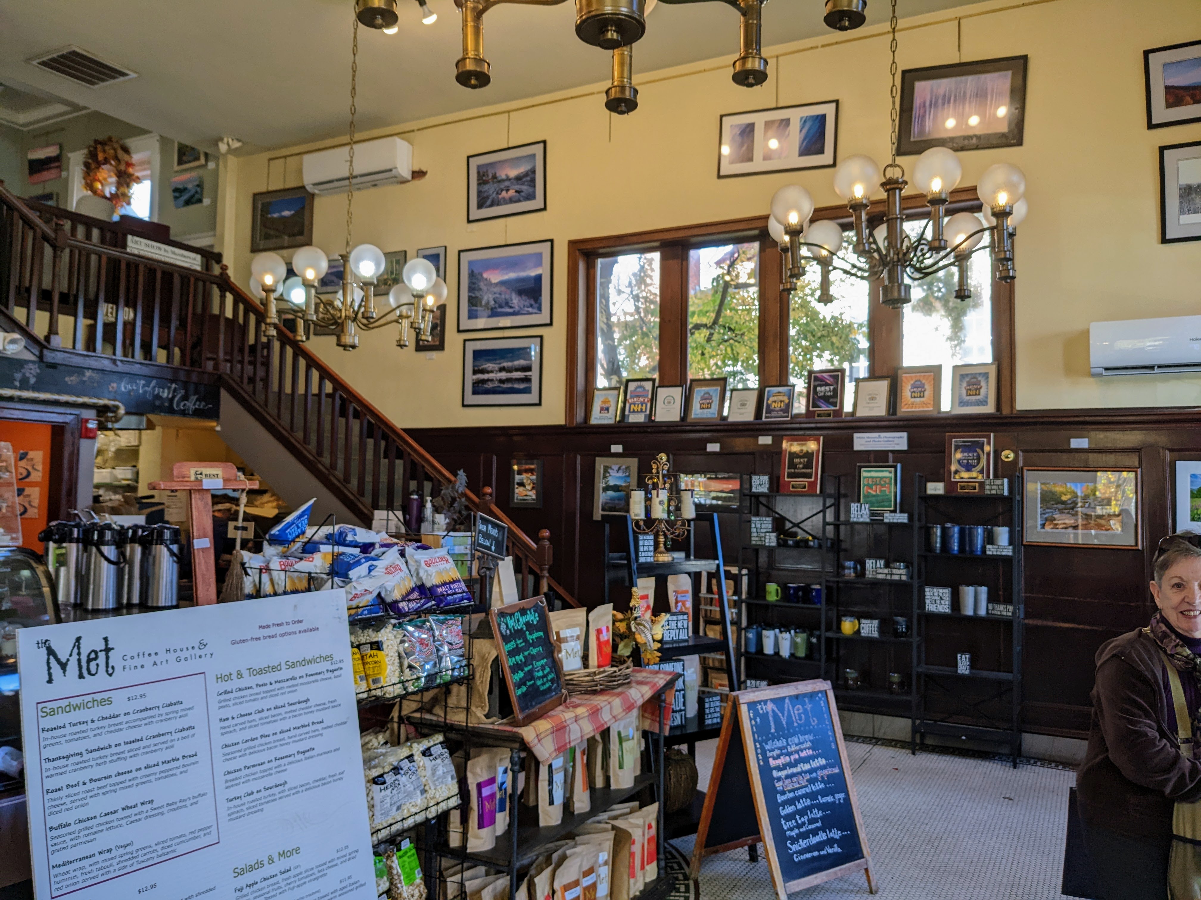 Even though we were pretty full, we couldn’t resist walking down to L.A. Burdick for dessert. We had hot chocolates (made with shaved chocolate and whole milk) and Abby let me try her spicy one. Yum. Mom and I split a decadent chocolate chip cookie. We practically rolled out of there after and back to Abby’s car so I could grab my backpack.
