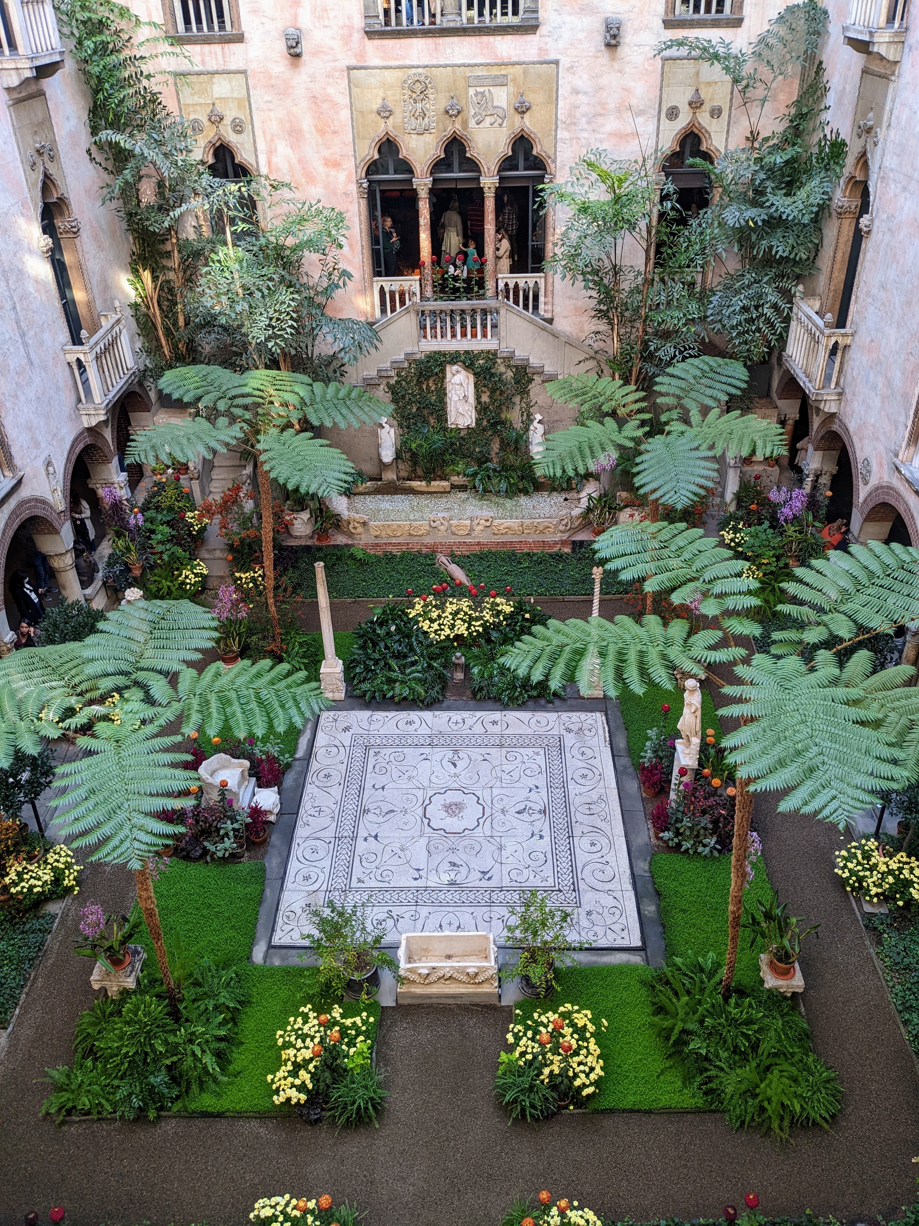 From Tatte, we got a Lyft to the Isabella Stewart Gardner Museum, which was on our must-see list. I’d been on a previous trip, but Mom never had. We got there almost exactly at 2:30 and were able to go right in as I’d purchased our tickets over lunch. We started at the top of the Palace and worked out way down, nearly overwhelmed at everything there was to see. The Isabella Stewart Gardner Museum (or the Bella) is one of my absolute favorites as the collection is displayed in a unique fashion—more like a personal collection that has been accumulated and loved over many years, which of course it was. Ancient art is displayed in juxtaposition to more contemporary pieces, which serves to highlight themes or methodology that have carried through decades or centuries.