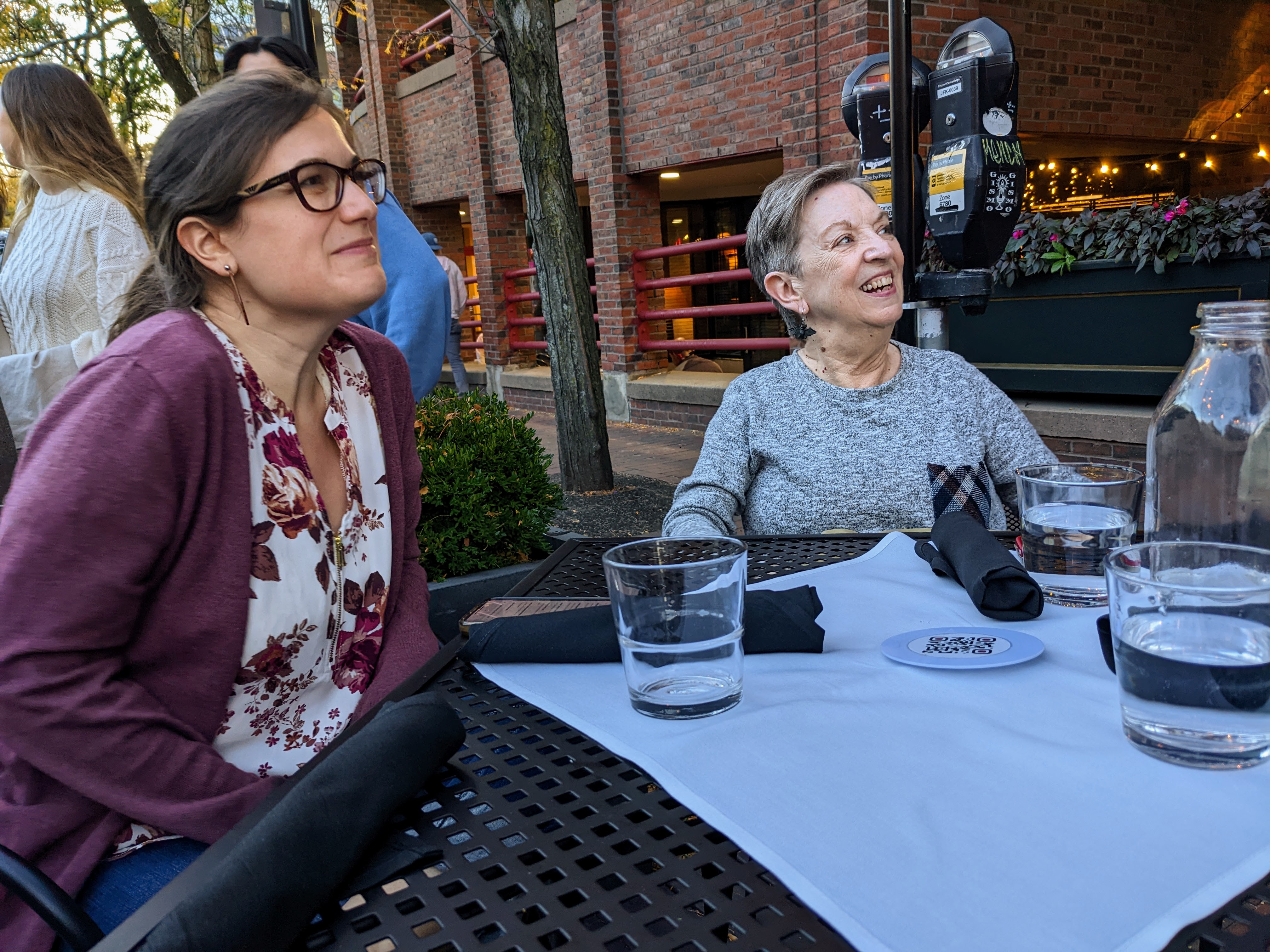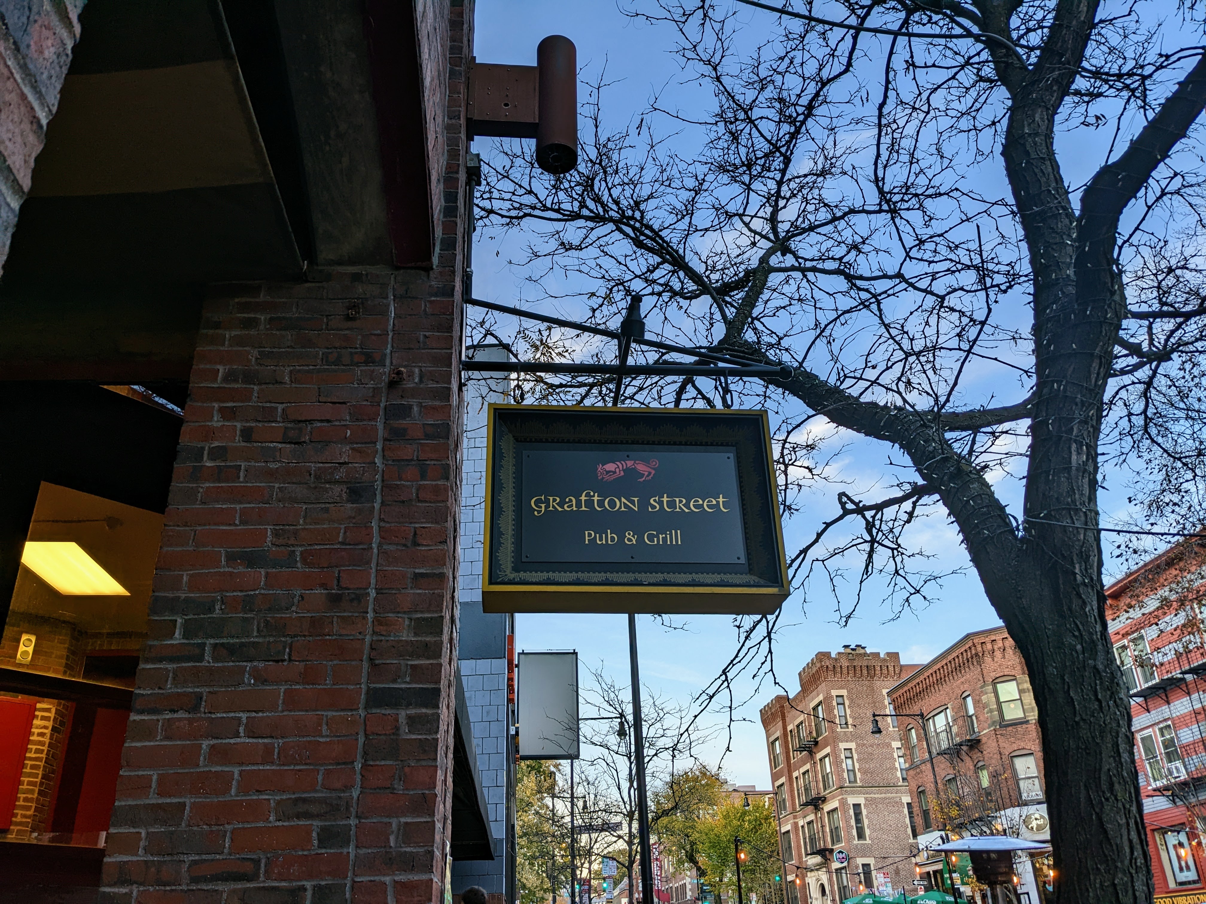 After the museum we decided it was time for an early dinner. We tried Grendel’s, but they were full. Abby suggested Grafton Street Pub and Grill, and we got one of the last available tables before a large line started forming! We were seated outside, which was lovely. I had a Stowe High and Dry hard cider, Mom had a Cabernet, and we shared a spinach artichoke dip with pita chips for the table. For my entree I got a seared salmon with couscous and Mom got steamed mussels.